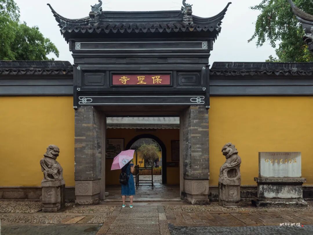 甪直的古桥也很特别。它拥有72座元明清的拱桥,因此被誉为江南“桥都”。这些桥有大有小,有宽有窄,桥孔数不同,形态各异,历经沧桑,古韵十足。江南古镇离不开这些古桥,它不仅构成了这幅山水美画的“线”,连接了各个点面,在实际生活上是居民方便的工具。甪直的文物古迹最著名的是保圣寺。保圣寺是一座千年古刹,寺内塑壁罗汉相传是唐代塑圣杨惠之的作品,距今已有1500多年的历史。