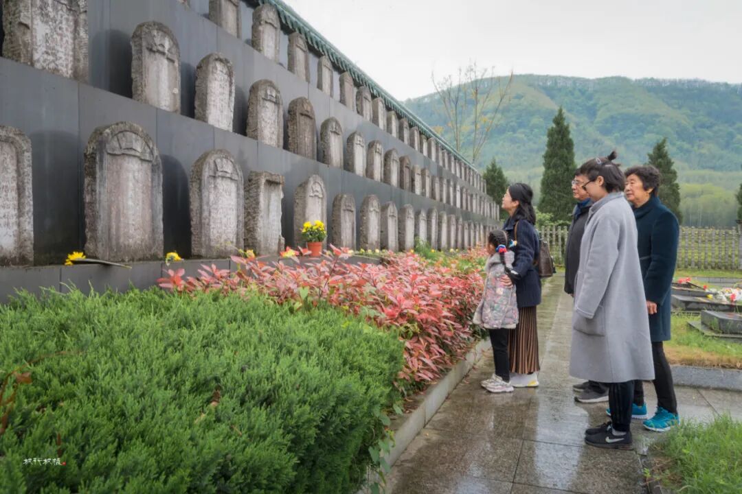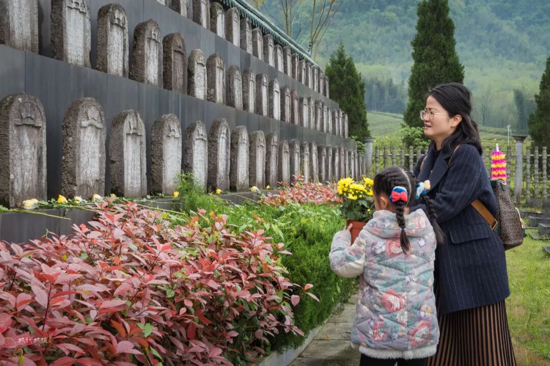 小镇上的居民每年清明节都自发到烈士陵园祭扫。