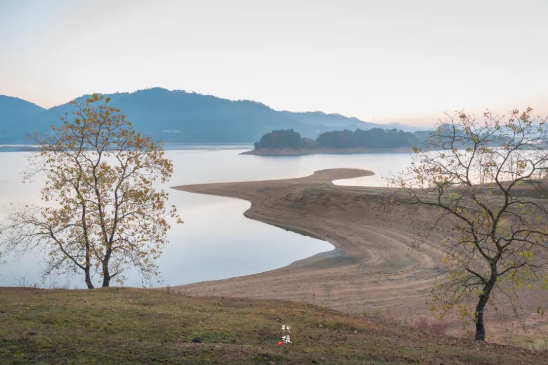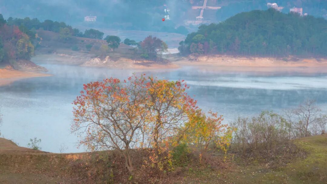 七星岛位于花园水库西南角,岛上遍布着野生的乌桕树,每年秋未冬初,当一阵寒潮来袭,便将乌桕的叶片点亮,缤纷的水上红叶呈现。