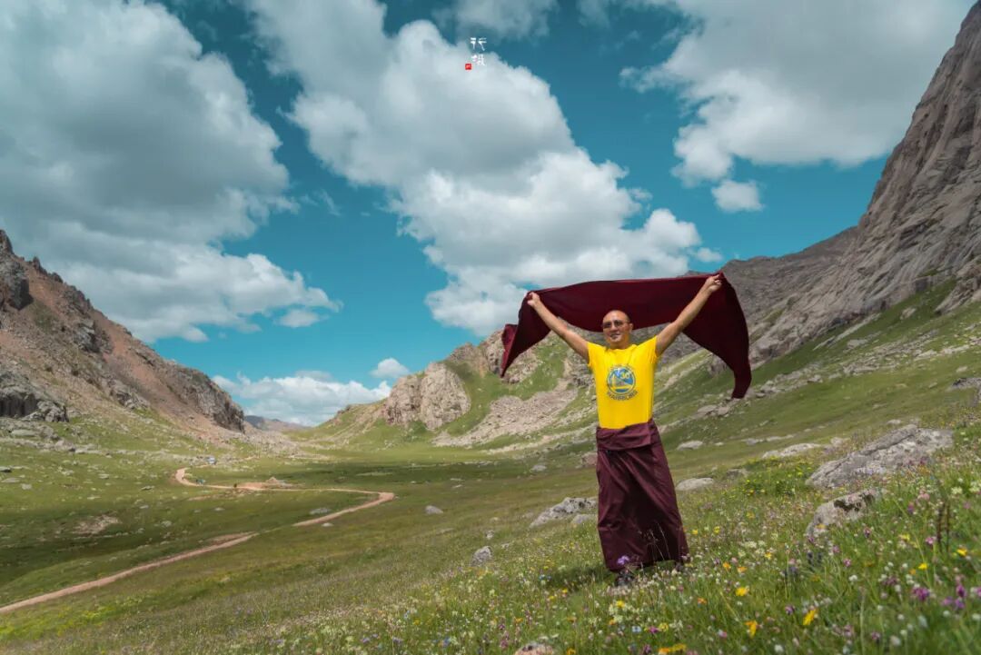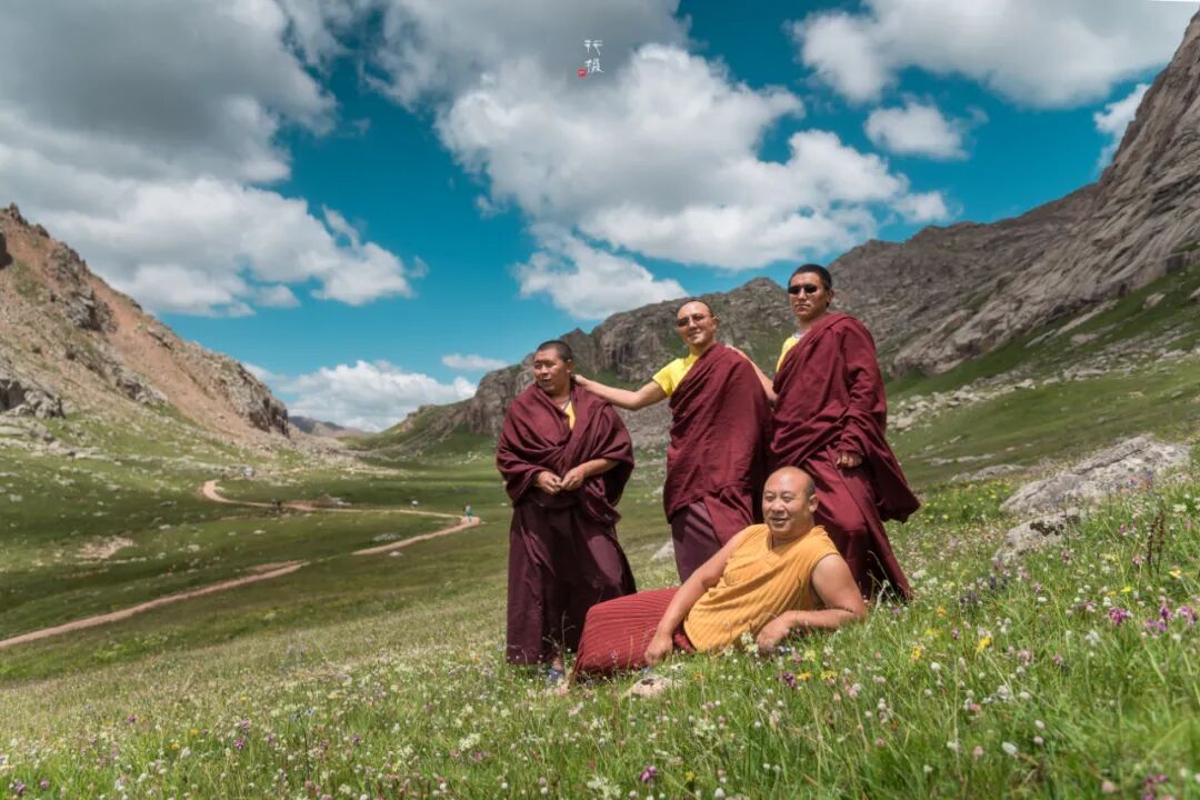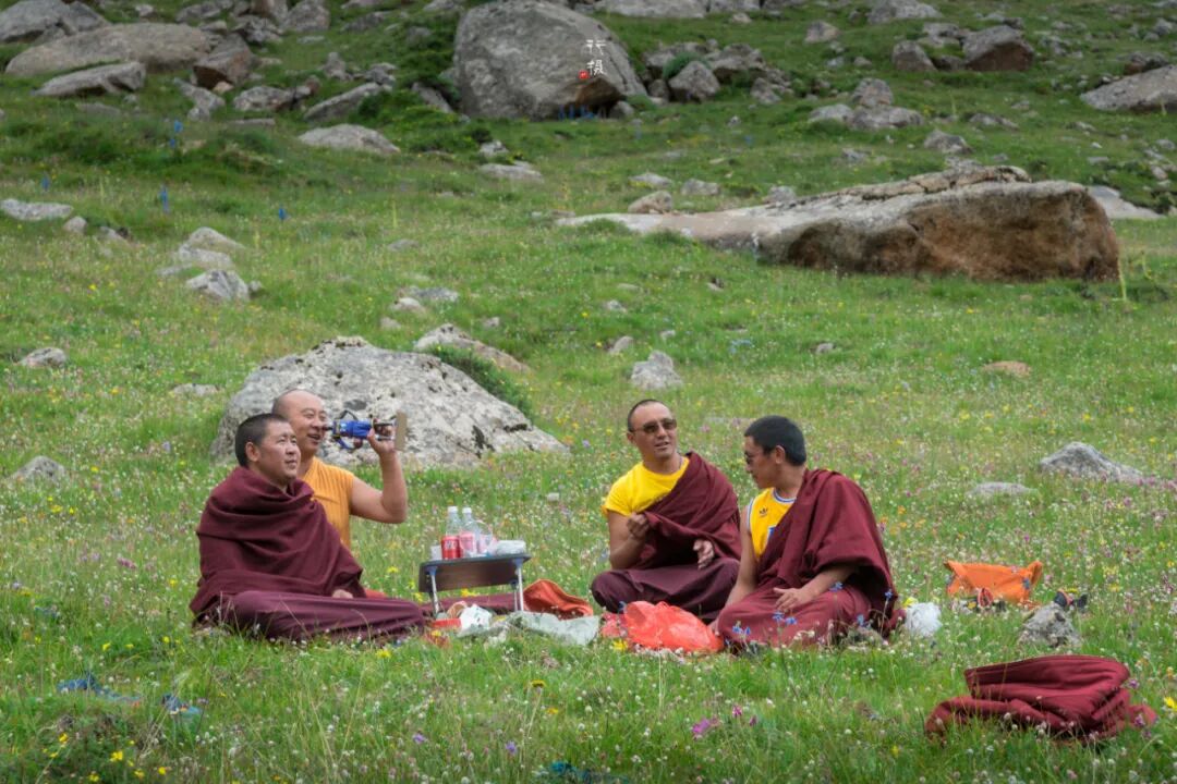 山坡上几位喇嘛也来旅游,看到我在拍照便请我帮他们拍几张。