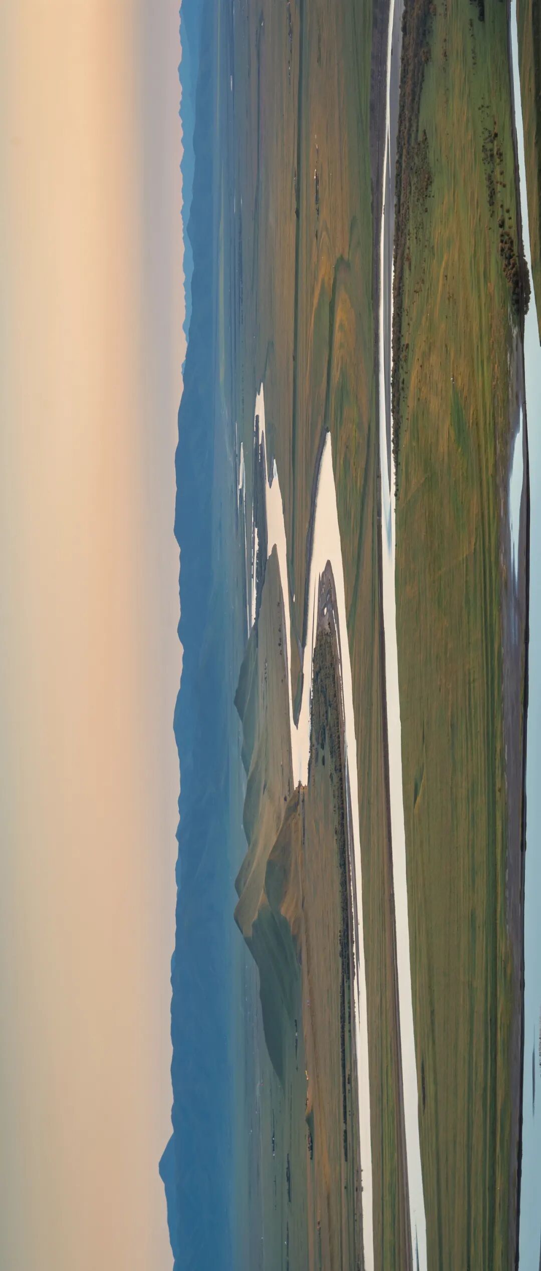 黄河在若尔盖草原的行走,没有“黄河之水天上来,奔流到海不复回”的磅礴气势,以缓慢地流速曲折绕行。黄河九曲第一湾最美的景色在黄昏时候,落日时分,当夕阳一点点变红落下时,黄河岸边牧草、野花、房舍都被染色,整个河谷笼罩在一片金黄中,站在观景台上,默默远眺大自然的美,让人为之动容。