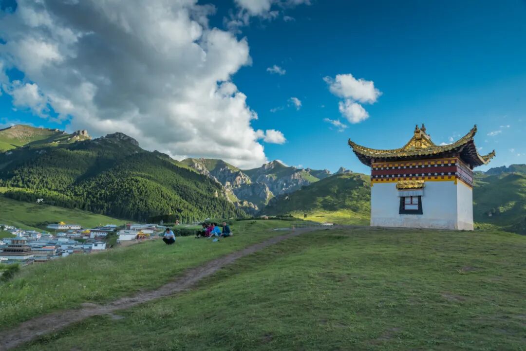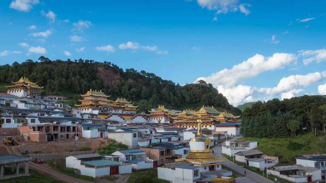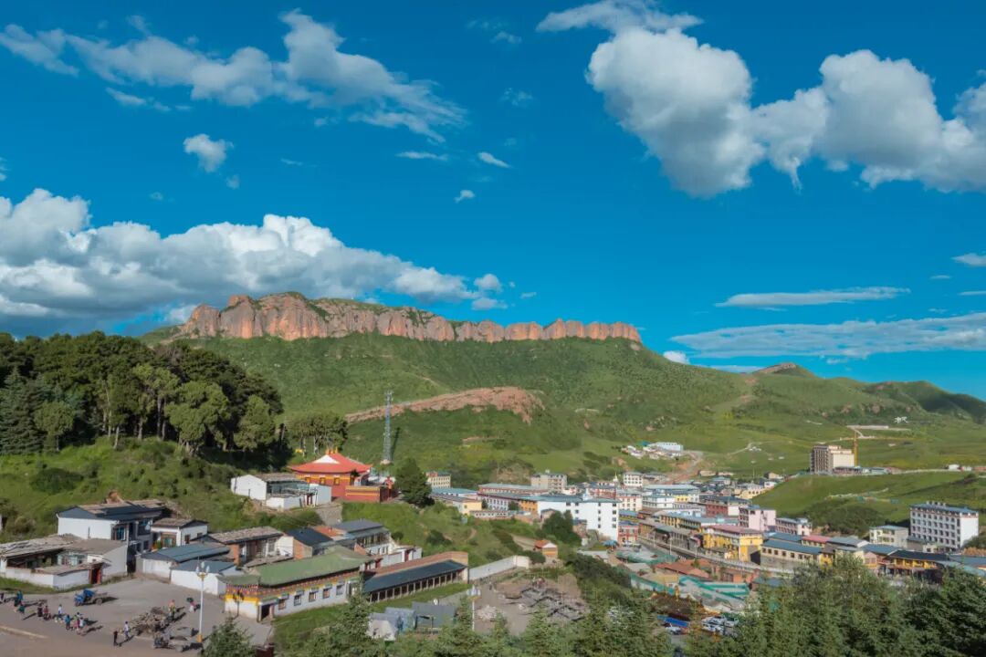 郎木寺是一座小镇,位于四川和甘肃两省的交界处。郎木寺属川、甘两省分治,地图上有明确的界限,实际上两省百姓混居,很难界定,因而郎木寺又是一个囊括了川、甘两省的地名,甘肃甘南藏族自治州碌曲县和四川阿坝藏族羌族自治州若尔盖县共同下辖。小镇周围被草原、树林、山丘、红色的石崖围绕,环境优美,有“东方小瑞士”之称。