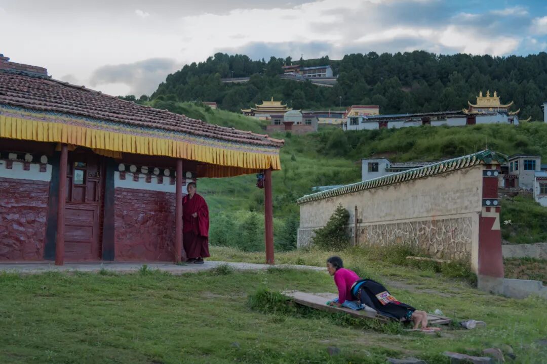 两寺庙中间还夹着回族的清真寺,一条小溪融合了藏、回两个和平共处的民族;喇嘛寺院、清真寺各据一方地存在着。晒大佛、做礼拜,小溪两边的人们各自用不同的方式传达着对信仰的执著。