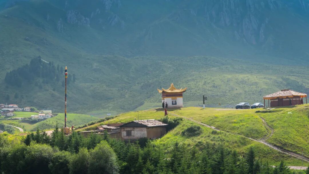 郎木寺镇上有两座历史悠久的藏传佛教寺院,北岸是属于甘肃的“安多达仓郎木寺”,南岸则是属于四川的“格尔底寺”。 两座寺院之间是一条清澈小溪,名叫白龙江,沿溪而上可以徒步白龙江峡谷。