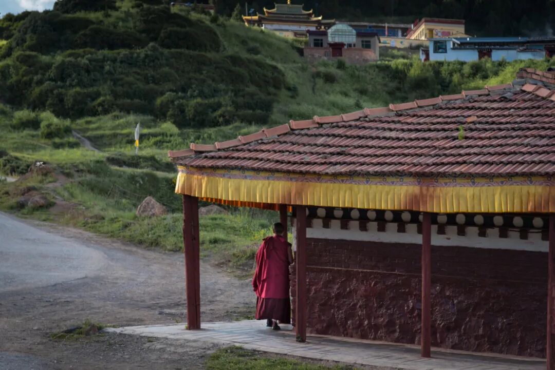很多人来郎木寺是因为这里可以看到天葬。位于安多达仓郎木寺后山的天葬台据说已有400多年历史,是目前藏区极少数对游客未作禁止参观规定的天葬台。2012年我曾经穿过寺院爬过几个开满各色野花的高坡远远的看过。天葬台位于山坡上一处经幡围绕的平地,成群的秃鹫在空中盘旋或在山坡蹲守。藏民说在这里死亡不仅仅意味结束,也意味着新的开始,带有重生与超脱的意境。千百年来,藏区群众用天葬这种特殊方式体现人类回归自然的法则。听说郎木寺的天葬台现在已改建,因为不同文化认知的差异,此次我们没有去打扰。