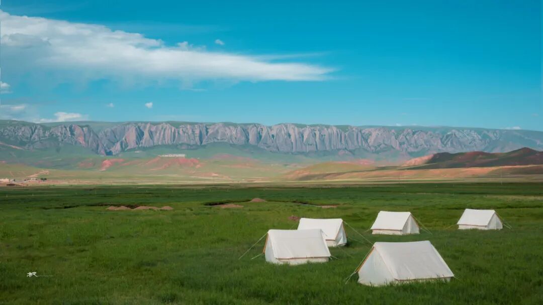 远处是时尚的甘加秘境帐篷营地,属于轻奢型,价格达4位数。