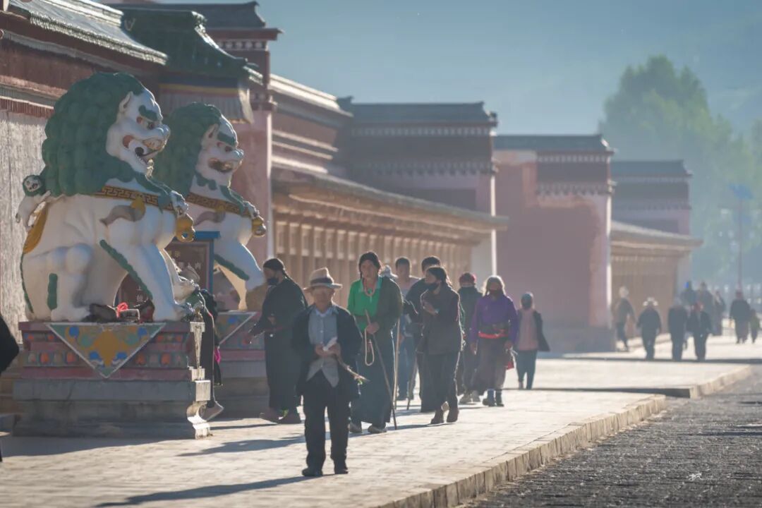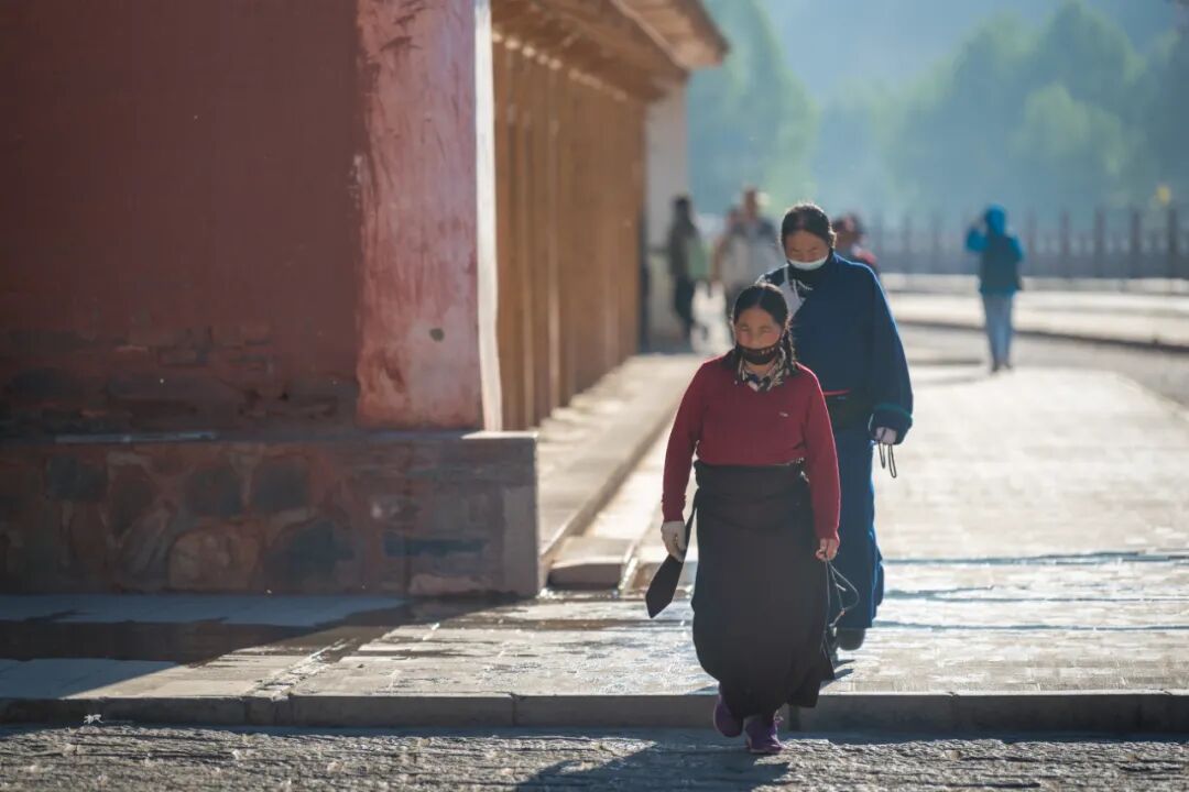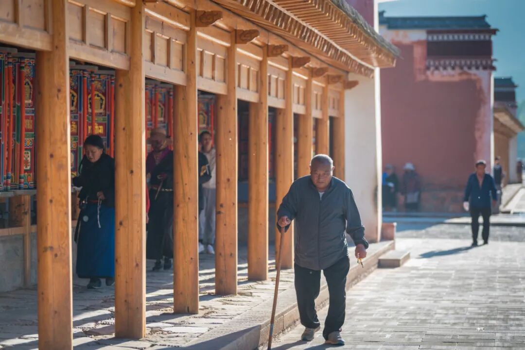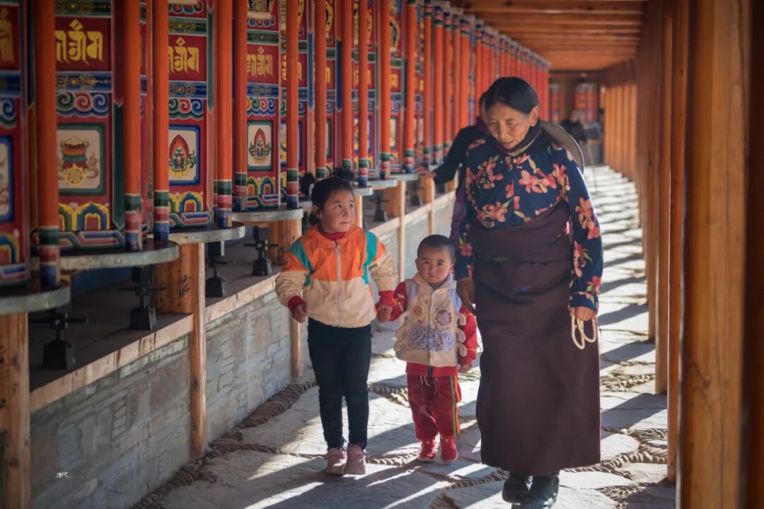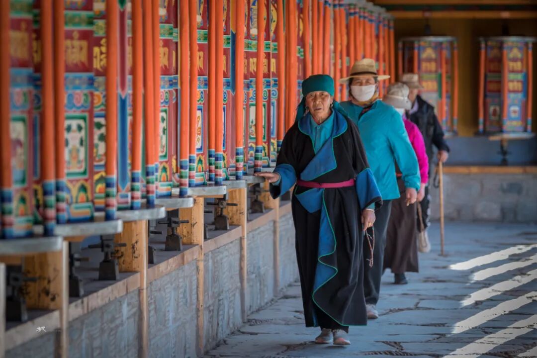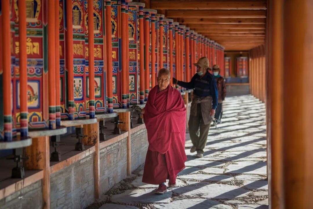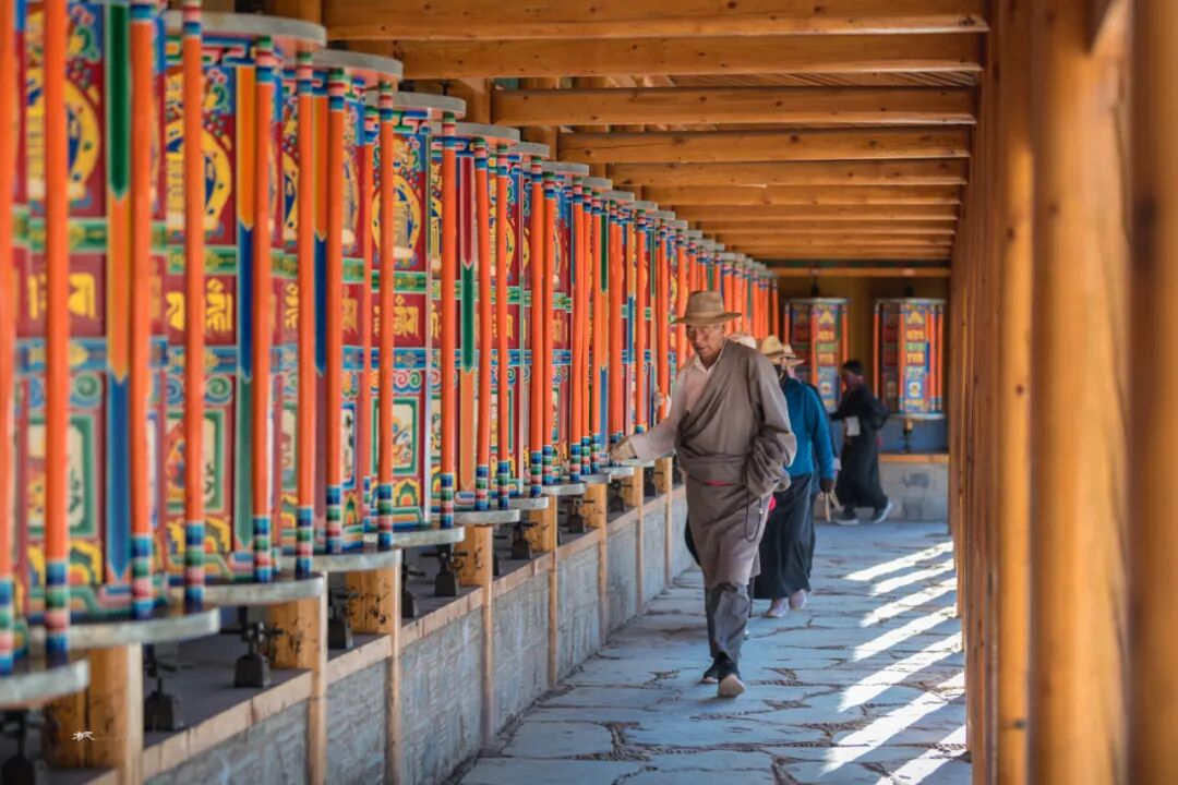 在一座座佛殿之间行走,看着来来往往的僧人和信众旋转的经筒,虔诚的诵经,游客们被这浓厚的佛教文化吸引,有些也加入转经的队伍。走在长长的转经廊上转动一个个经筒,虽然看不懂经筒上的经文,却能读懂他们脸上的信仰和虔诚。