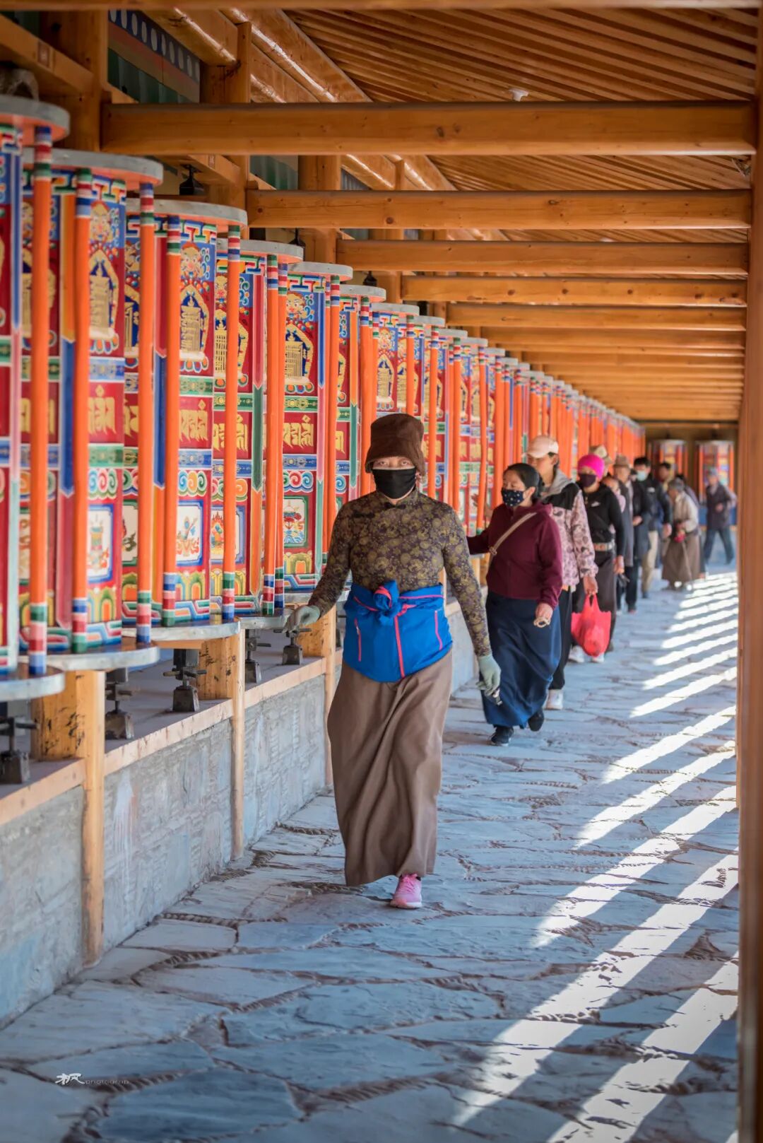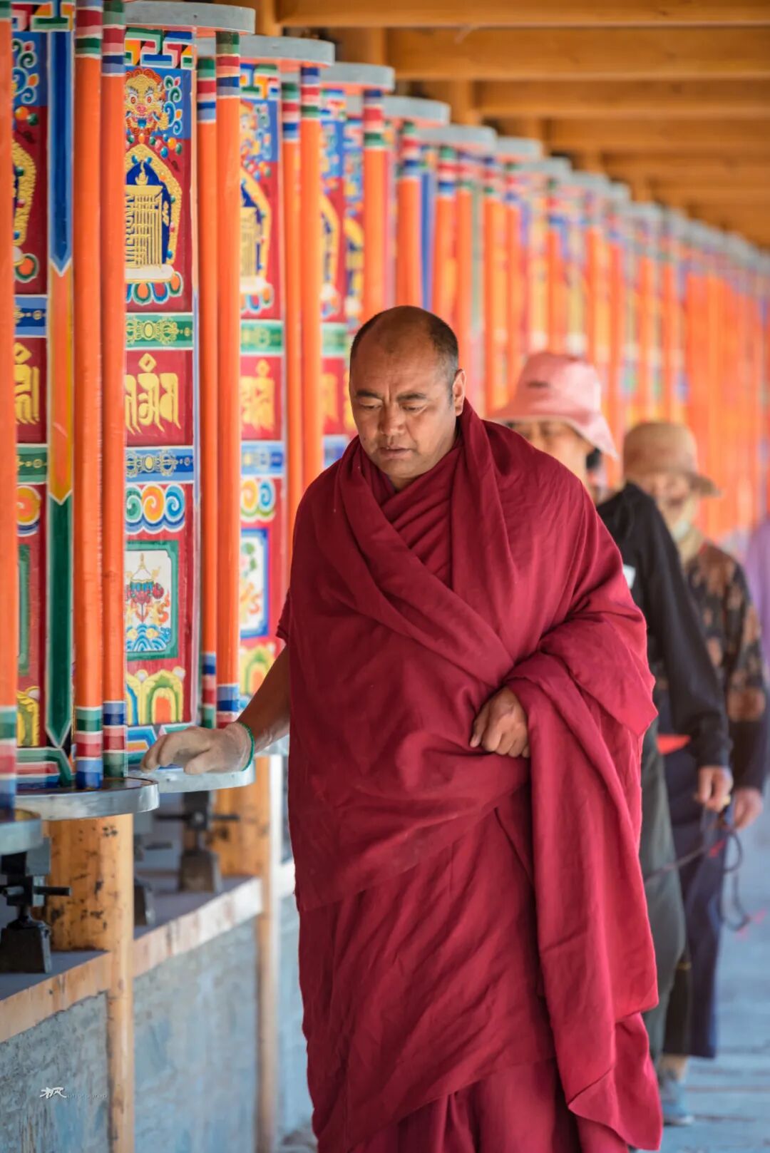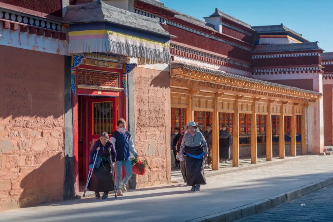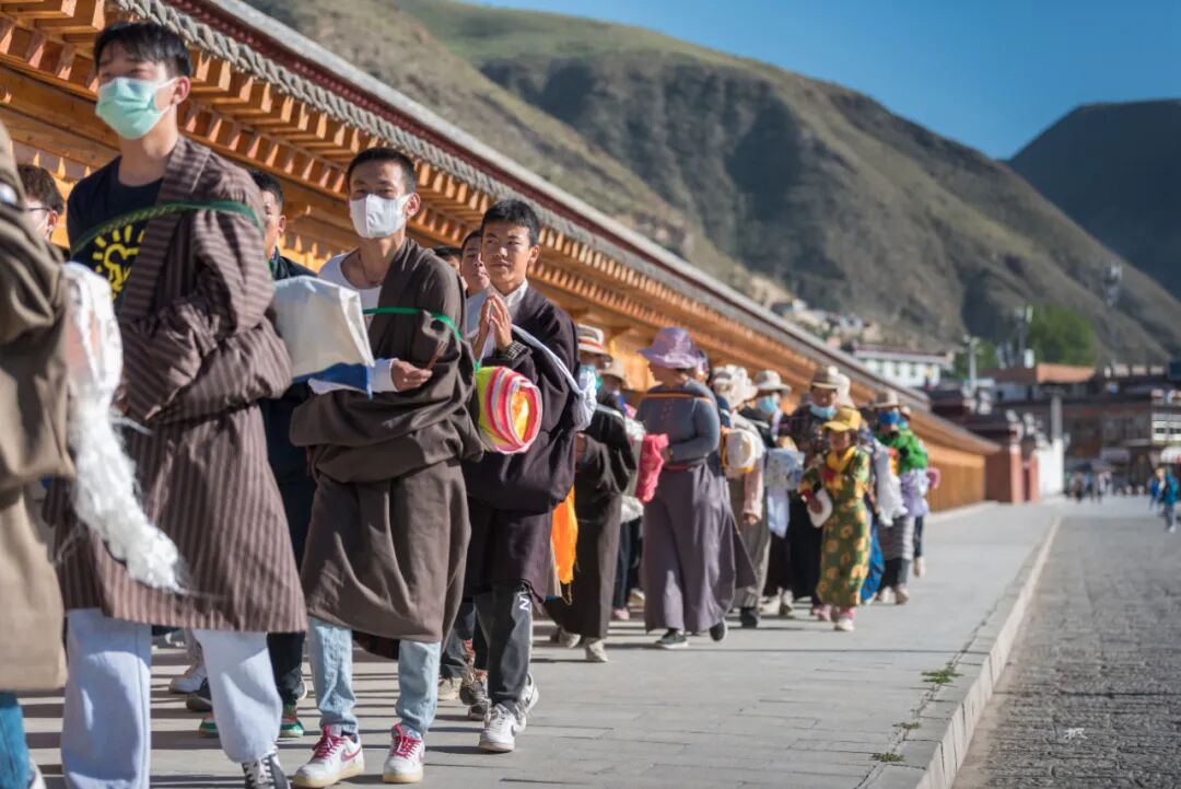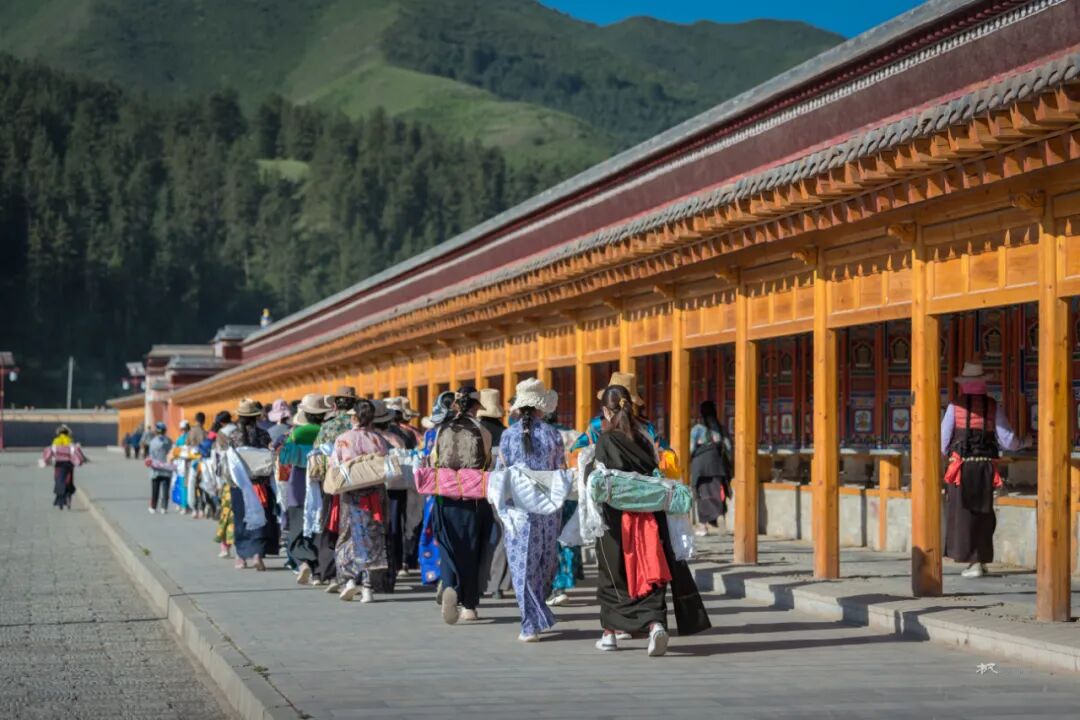 在一座座佛殿之间行走,看着来来往往的僧人和信众旋转的经筒,虔诚的诵经,游客们被这浓厚的佛教文化吸引,有些也加入转经的队伍。走在长长的转经廊上转动一个个经筒,虽然看不懂经筒上的经文,却能读懂他们脸上的信仰和虔诚。