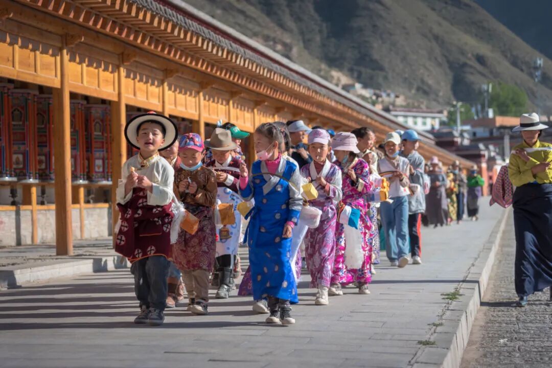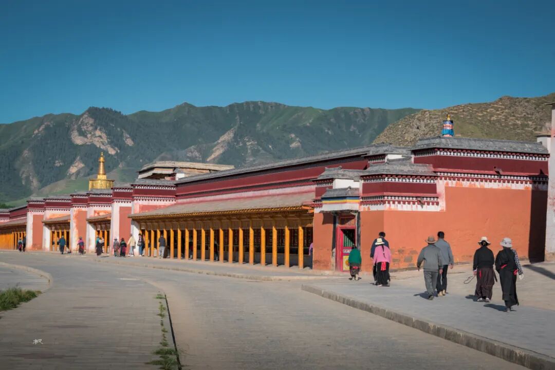 清晨,夏河还没有完全醒来,藏民像潮水般涌向寺院,诵经声已经此起彼伏,转经筒,吱吱作响。拉卜愣寺有条环绕整个寺院区,称为世界上最长的转经走廊,转经廊有2000多个转经桶,长达四、五公里,全部转完需要1个多小时。