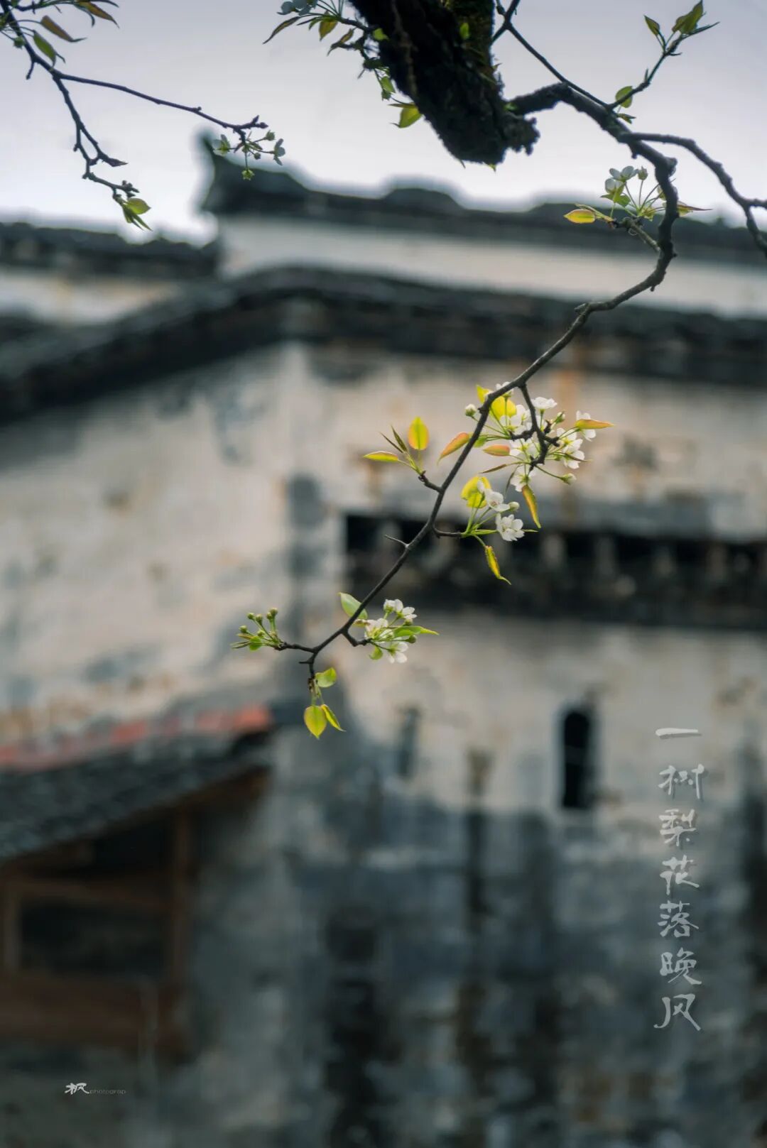 三月的江南细雨纷纷,梅花谢了,海棠才开,桃花便已来争艳。陌上梨花寂寂的绽放,静静的一树树若雪。听着窗外的雨,闻着若有若无的茶香,我忆起婺源庆源村里的梨花,它悄然的开在村中的每一个角落,洁白而娇艳的花朵与古村那份久经岁月苍桑衬印,诠释着生生不息。黄昏时分,走在山村飘飞的春雨里,拾一瓣浅白芳香的花瓣,看风中飘散着纷然的晚烟。“一树梨花落晚风“,“一别如斯,落尽梨花月又西“,”惆怅东栏一株雪,人生看得几清明“。此刻,中国古诗词的美把思绪延伸到千年。