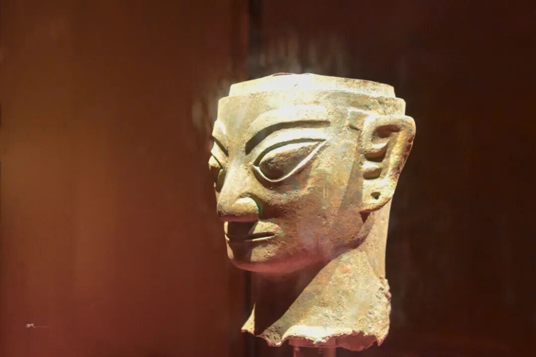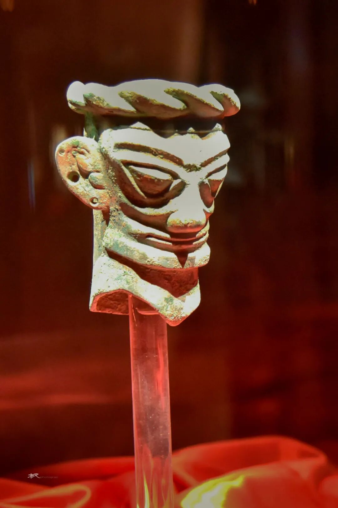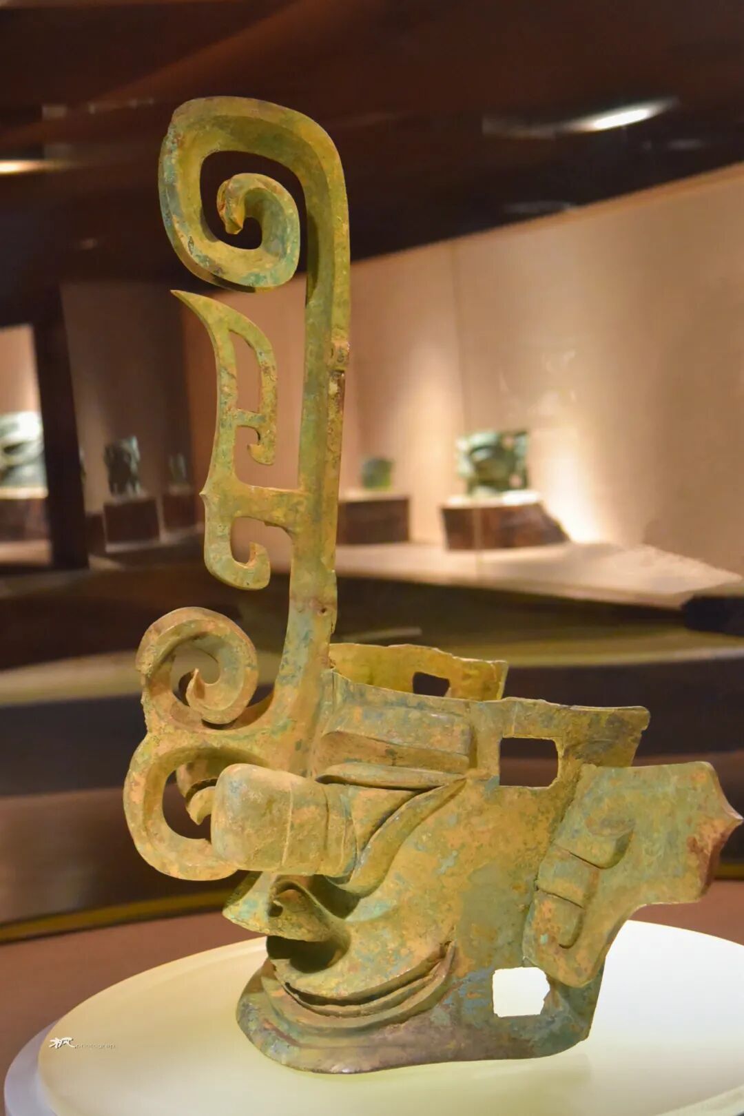 铜人头像 ,造型各异青铜人头像,出土时面部均有彩绘,而且在耳垂上穿孔,用以挂戴耳环耳饰,看来我们的先人很爱美的。