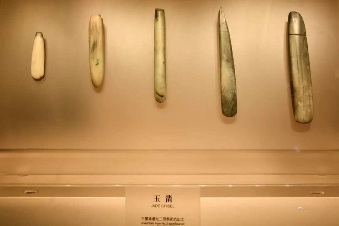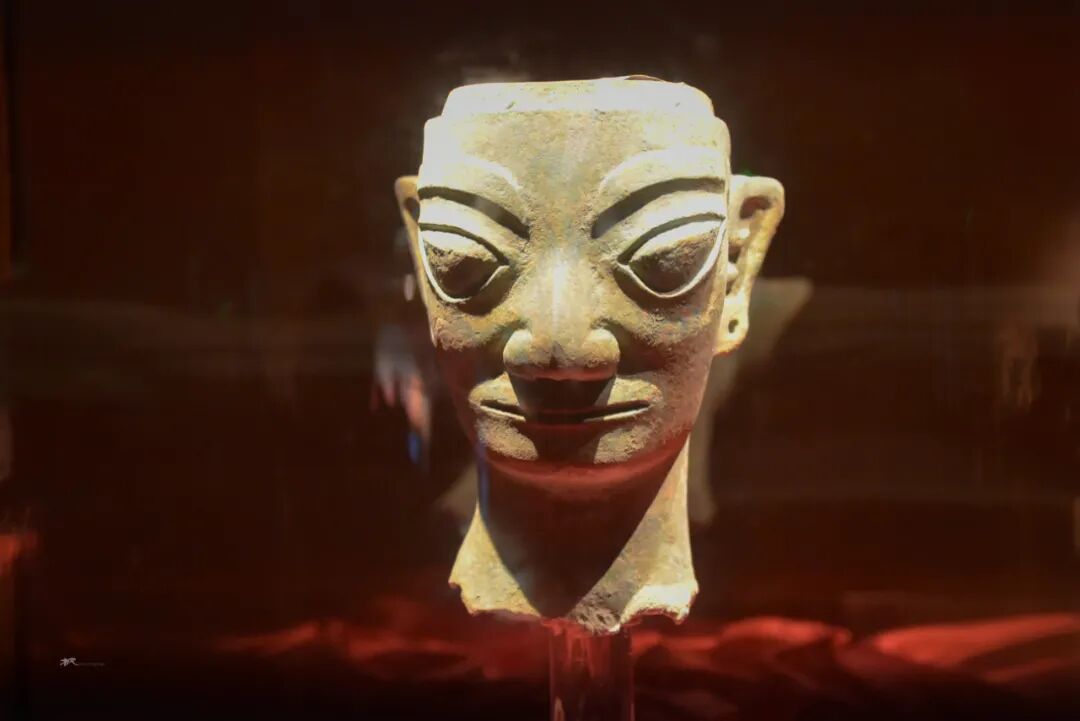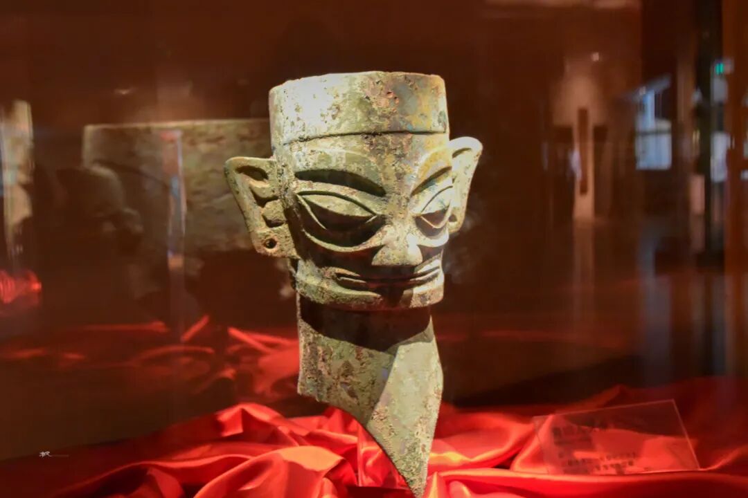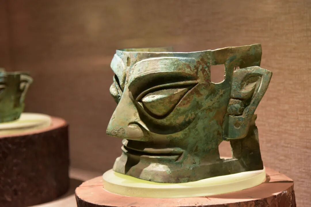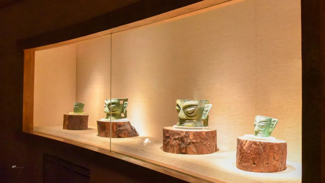铜人头像 ,造型各异青铜人头像,出土时面部均有彩绘,而且在耳垂上穿孔,用以挂戴耳环耳饰,看来我们的先人很爱美的。