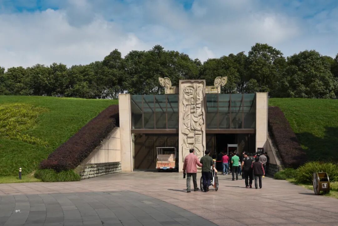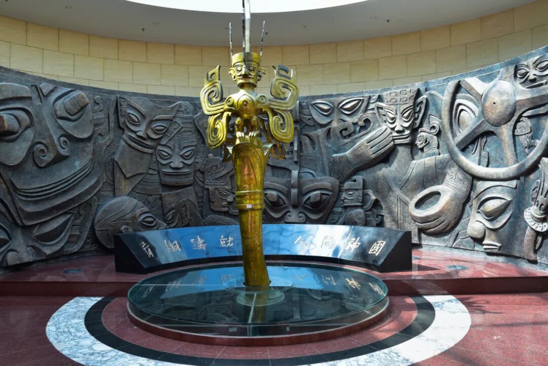 三星堆博物馆位于四川省广汉市城西,南距成都38公里,是一座大型专题性遗址博物馆。三星堆古遗址分布面积12平方公里,距今已有5000至3000年历史,是迄今在西南地区发现的范围最大、延续时间最长、文化内涵最丰富的古城、古国、古蜀文化遗址。三星堆古遗址被称为20世纪人类最伟大的考古发现之一,昭示了长江流域与黄河流域一样,同属中华文明的母体,被誉为“长江文明之源”。