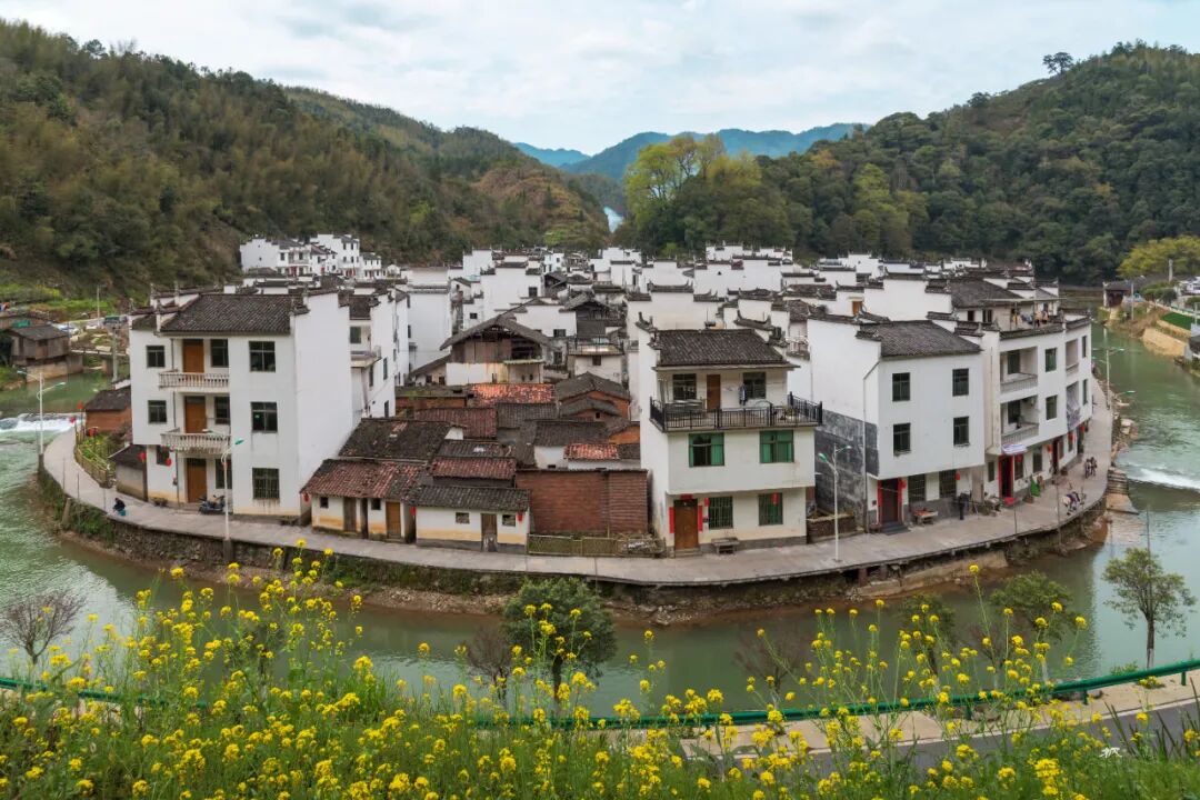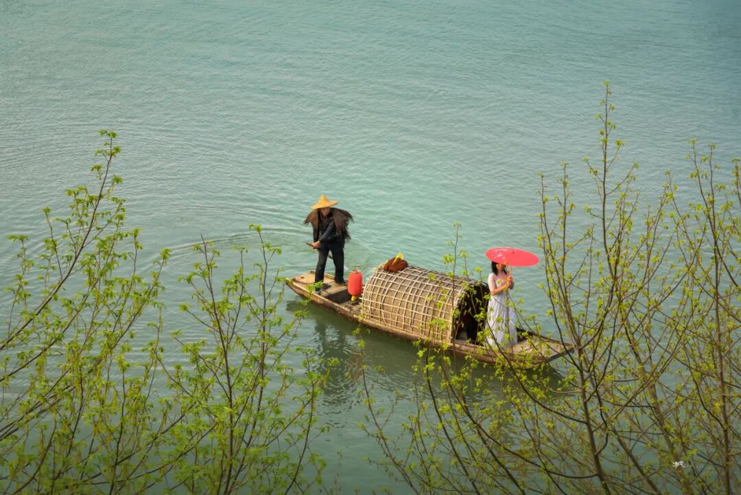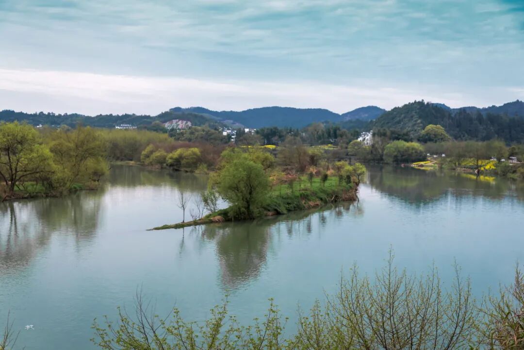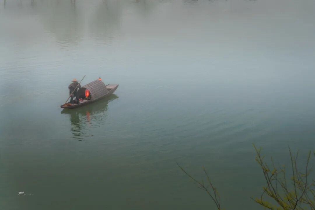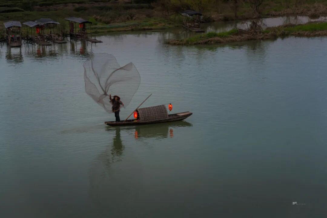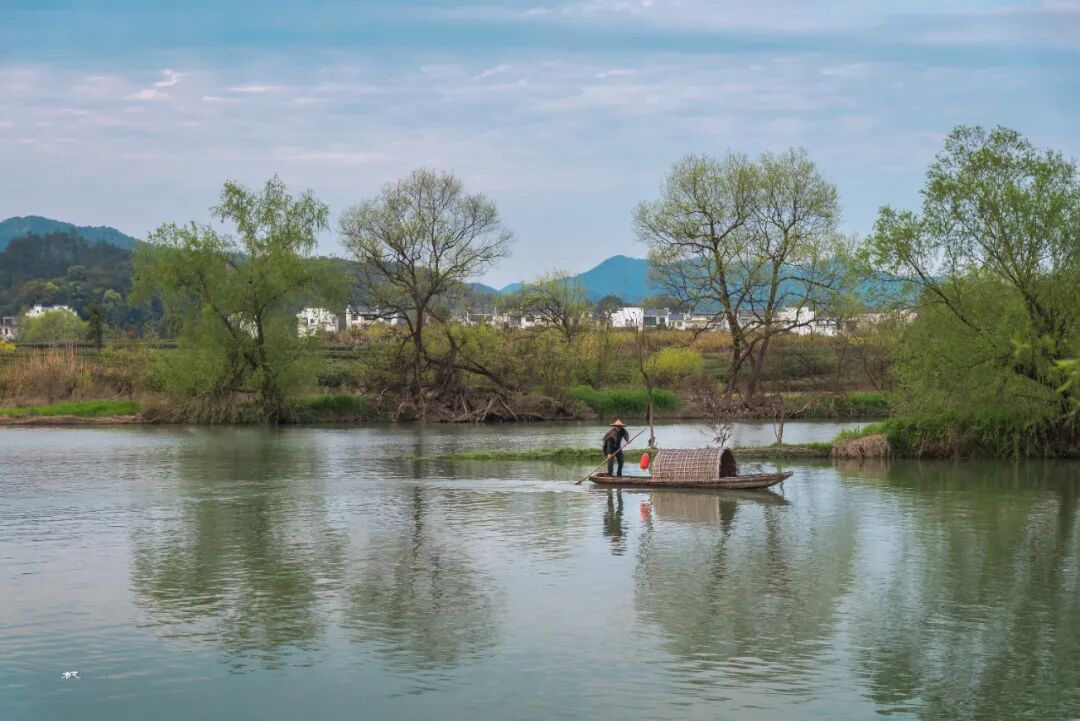 三月春深,站在河对岸高处放眼望,远处青山碧水,近处小桥人家,粉墙黛瓦的民居和金灿灿的菜花浑然天成,让人联想到陶渊明笔下的世外桃源。坐在岸边看晚霞,天色渐暗,一叶小舟划过,船头红灯笼点亮,透着水墨丹青的韵味。