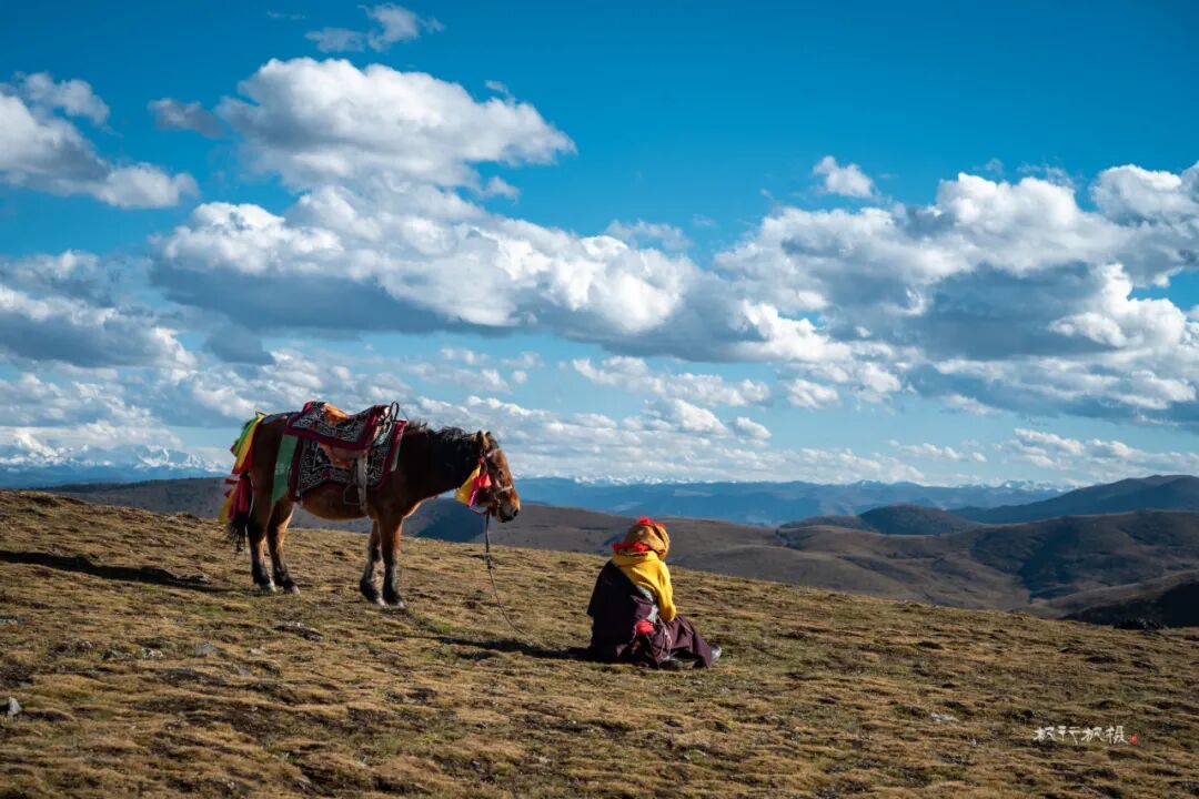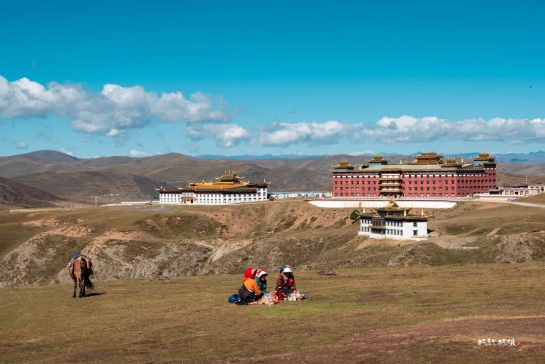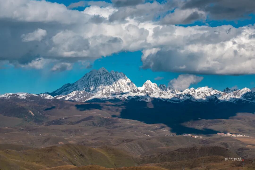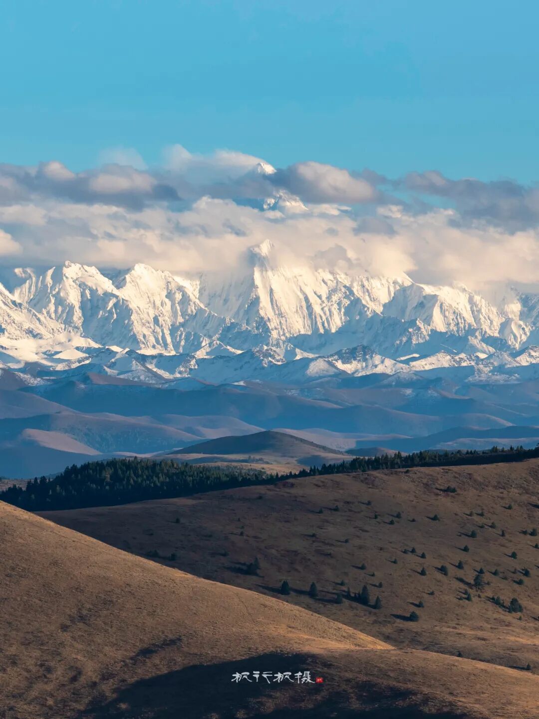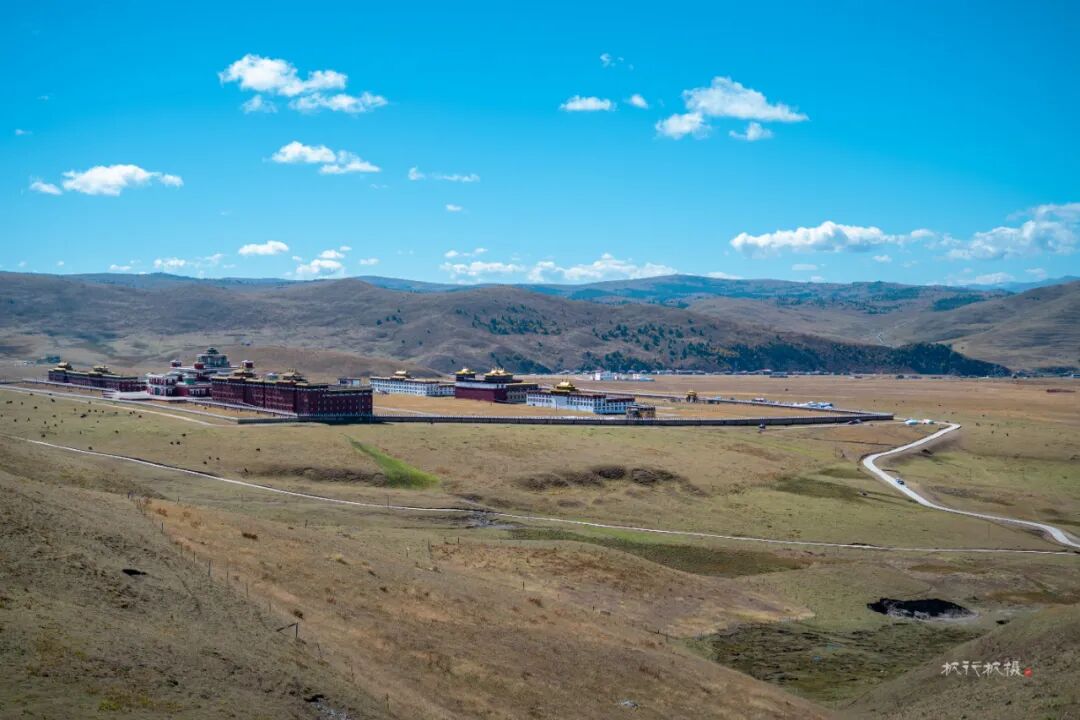 亚拉雪山下有一片宏大的寺院,那便是木雅大寺,寺院在夕阳中闪烁着金光。木雅大寺山后有一条小路沿着山脊盘旋而上,一直到亚拉雪山下的山口。为了更近的仰望雪山,第二天一早就赶去云绕亚拉观景台,想和亚拉雪山来了一次近距离对望,终因山路过于艰险半途而废。