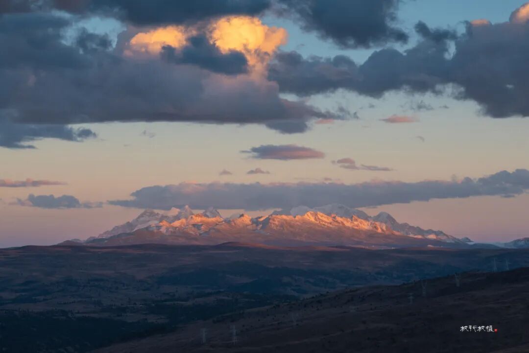 车沿248省道向八美镇方向行驶不久,左转沿一条小河进入草原上的乡道,道路在草原上蜿蜒爬升,十多公里后到了八郎生都村口,沿未铺装的沙土路继续上山,几公里车到山口。车到山口的露营地,还需要再徒步爬升近百米到达4200米的观景台。登上山脊,高耸入云的亚拉雪山便山呈现在眼前。在山顶静候夕阳,西边是日落余晖,东边是连绵起伏的山脉,云雾在雪山顶缭绕。太阳缓缓落下,雪山被渐渐染红。我们看到了亚拉雪山的日照金山!