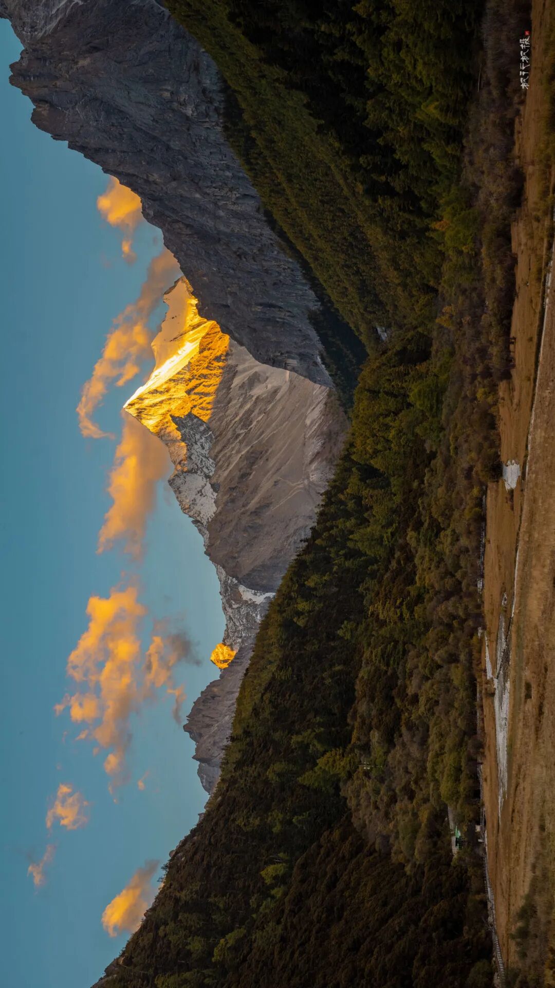 央迈勇藏语意为“文殊菩萨”,海拔5958米。文殊菩萨在佛教中是有智慧的化身,雪峰像文殊菩萨利用手中的智慧之俞直指苍穹。