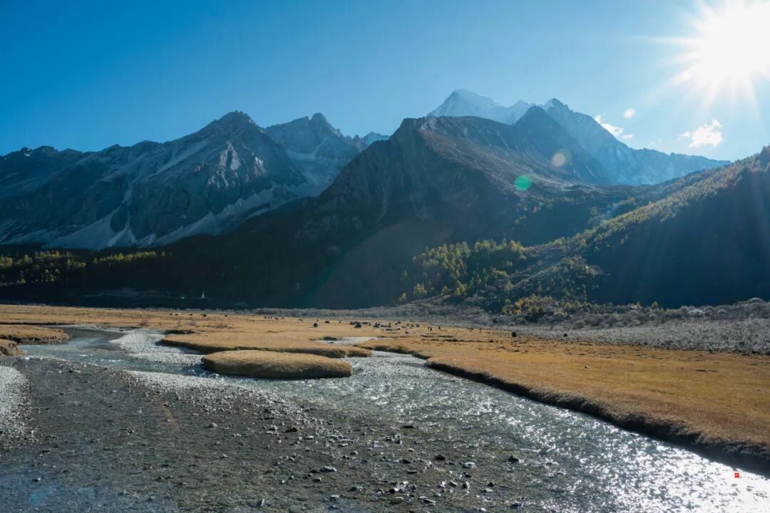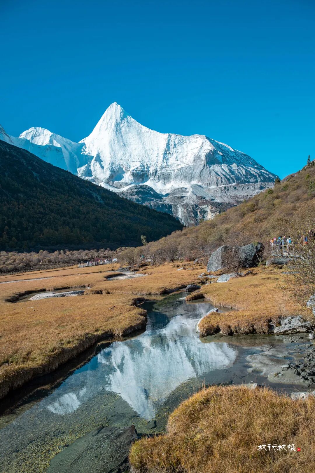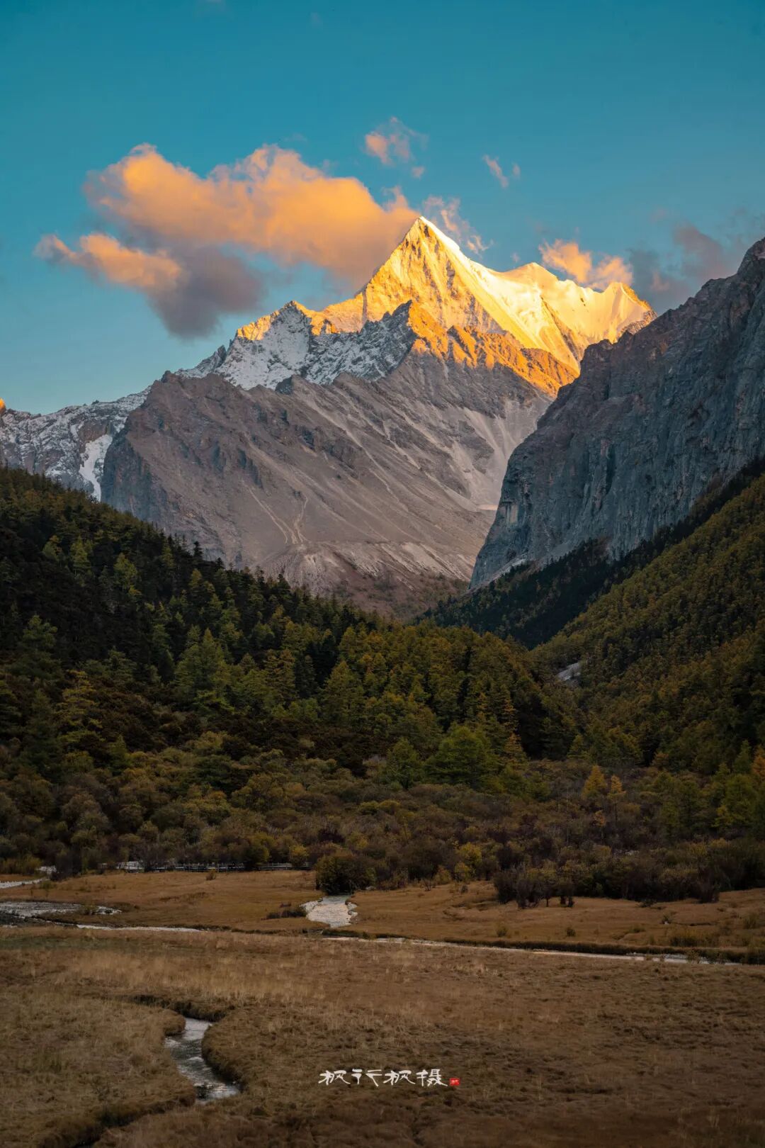 稻城亚丁最美的季节毫无疑问是秋天,十年前的9月初秋曾经游览过稻城亚丁,从此念念不忘。相隔十年终得又一次相见,这次的稻城亚丁行精心安排在最童话的十月深秋。深秋的亚丁最是绚丽多彩,高原草甸已经变为金黄,圣洁高耸的神山环抱着金色草场,曲折蜿蜒的小溪静静流淌、草场上是悠闲的牛羊。