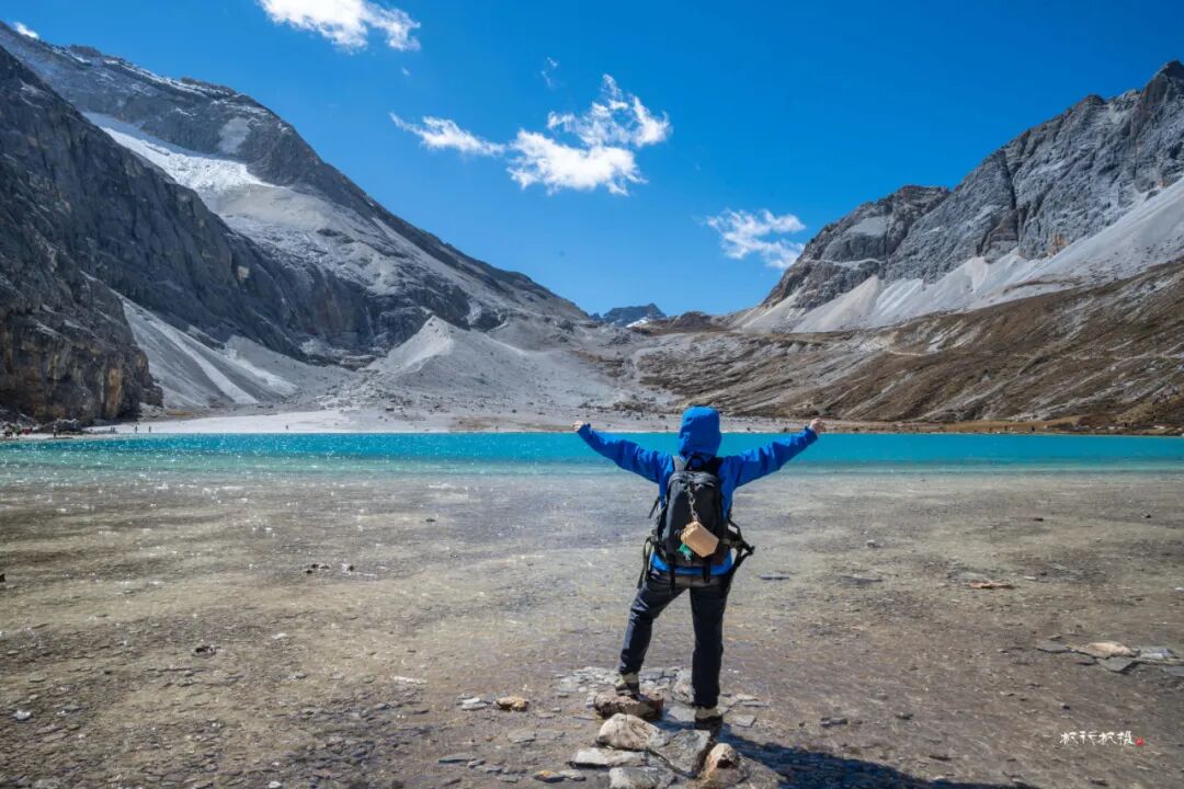 乐极生悲,无人机在牛奶海飞丢,爬到右侧山坡搜寻无果,拍一张留下纪念。
