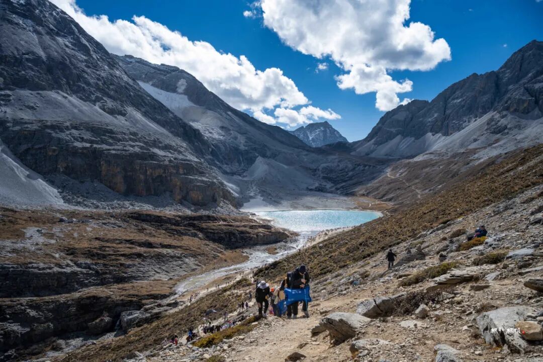 亚丁游览有一条称为金刚线最具挑战性,金刚线是自海拔高度4100米的洛绒牛场徒步登山到牛奶海和五色海4760米的山脊,全程6公里最为艰难,高海拔缺氧让很多人望而却步,我今天的第一站是再次挑战金刚线。
