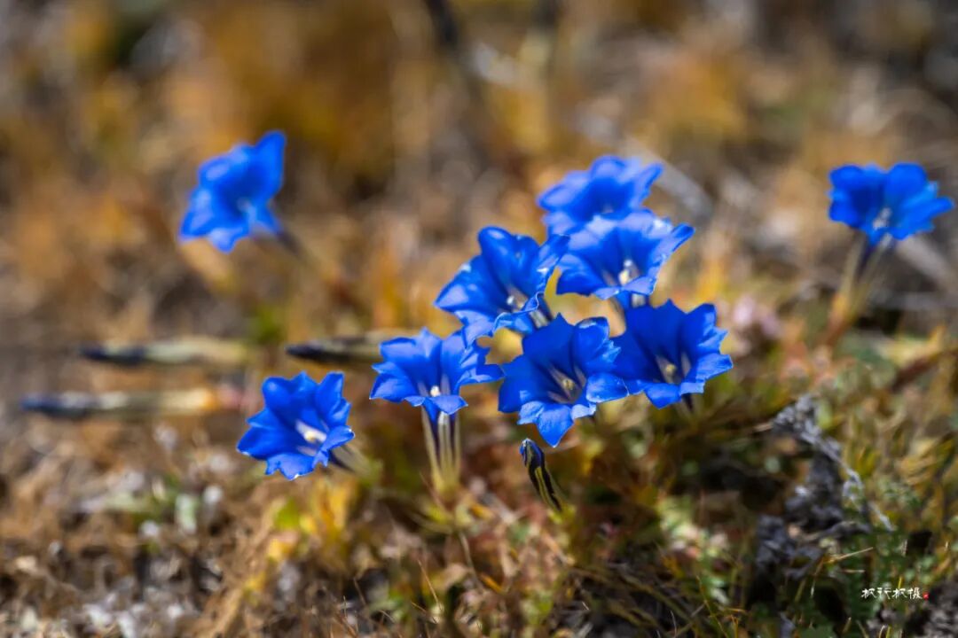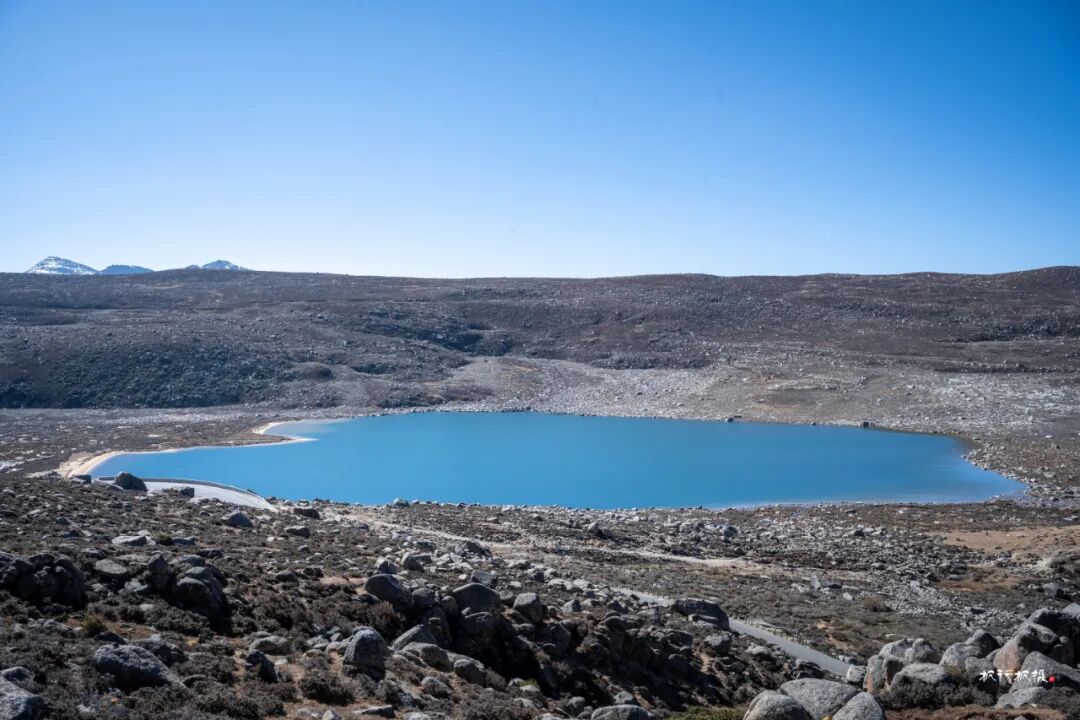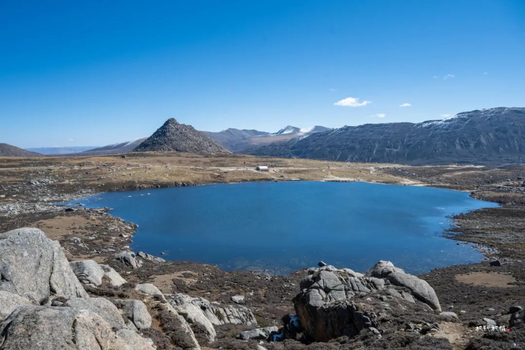 垭口两侧遍布着大大小小的海子,在蓝天下湛蓝湛蓝。
