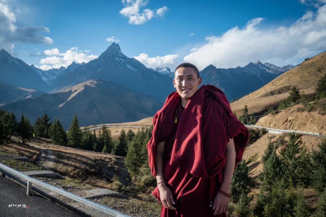 年轻的僧人随两位长者过来看风景,和善中带着羞涩。