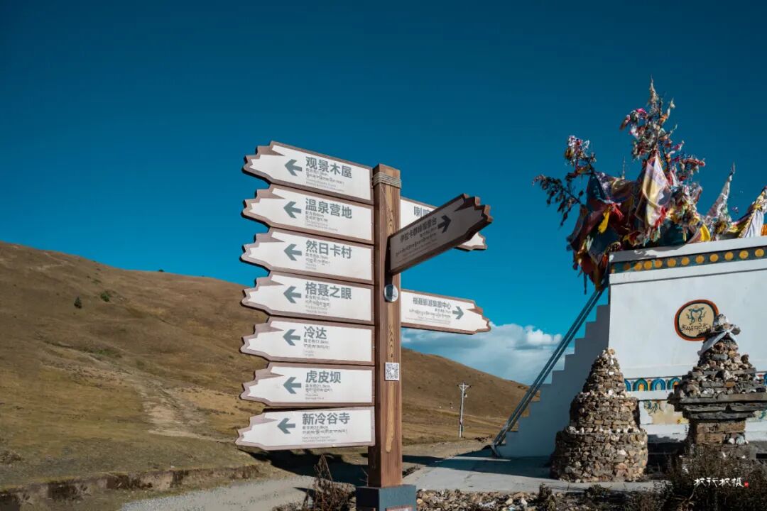 自理塘出发,沿着318国道一路向西约5公里便进入005乡道,便踏上了去往格聂神山的路。格聂南线旅游服务中心已建好,但尚未开运营,进入格聂南线必须登记,全程两百多公里无加油站。