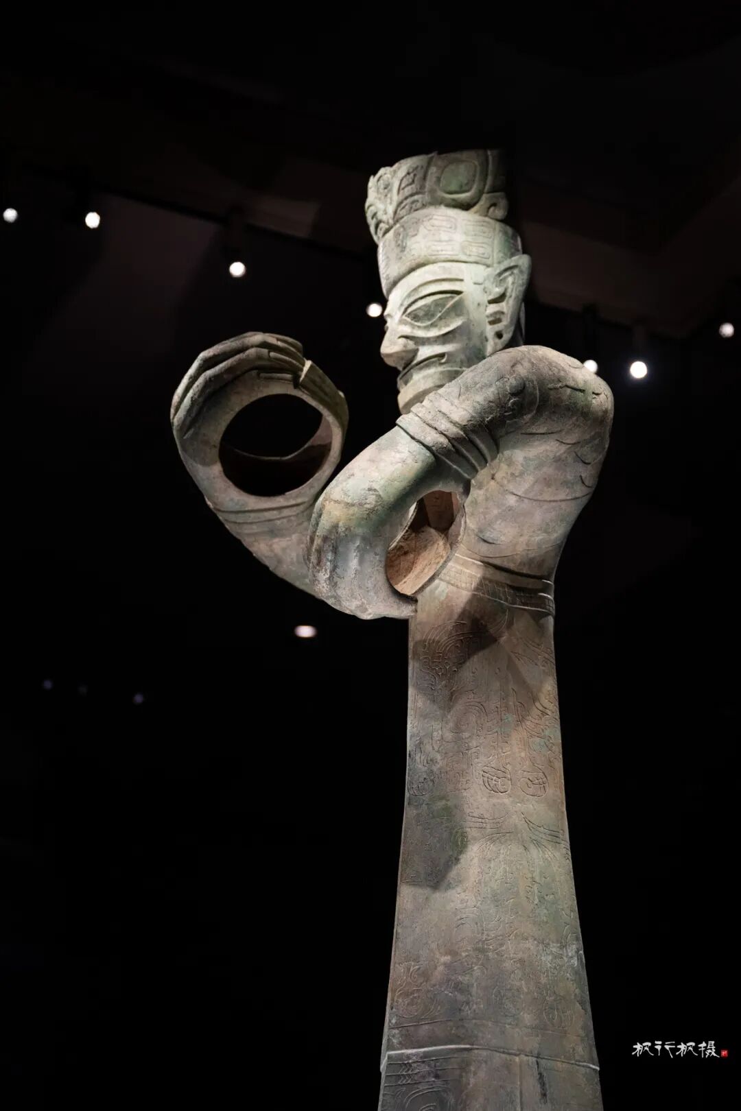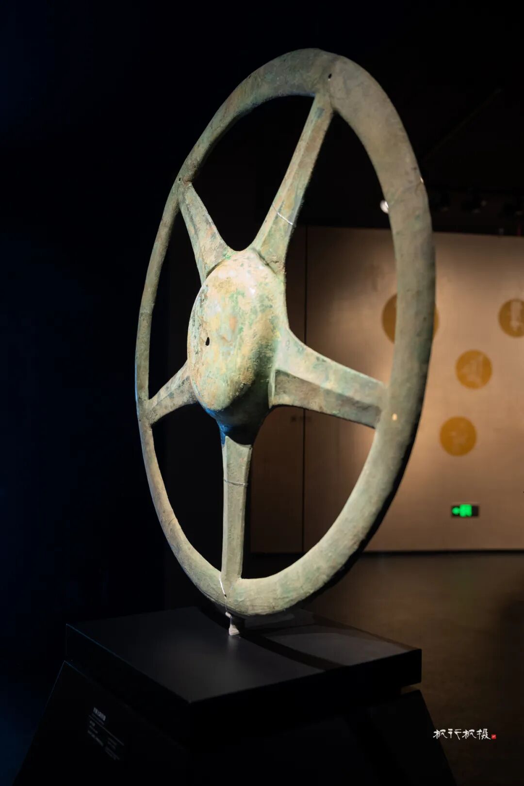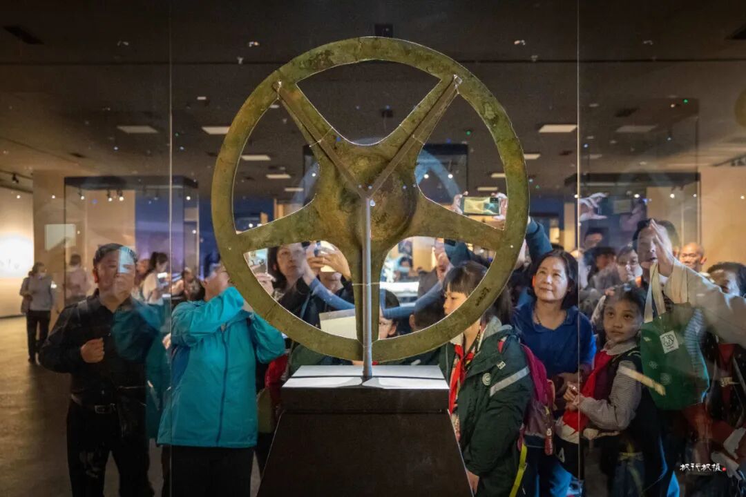 青铜太阳轮的五根支撑柱呈现近乎完美的五等分,因造形似现代汽车方向盘而变身网红,吸引着镜头。
