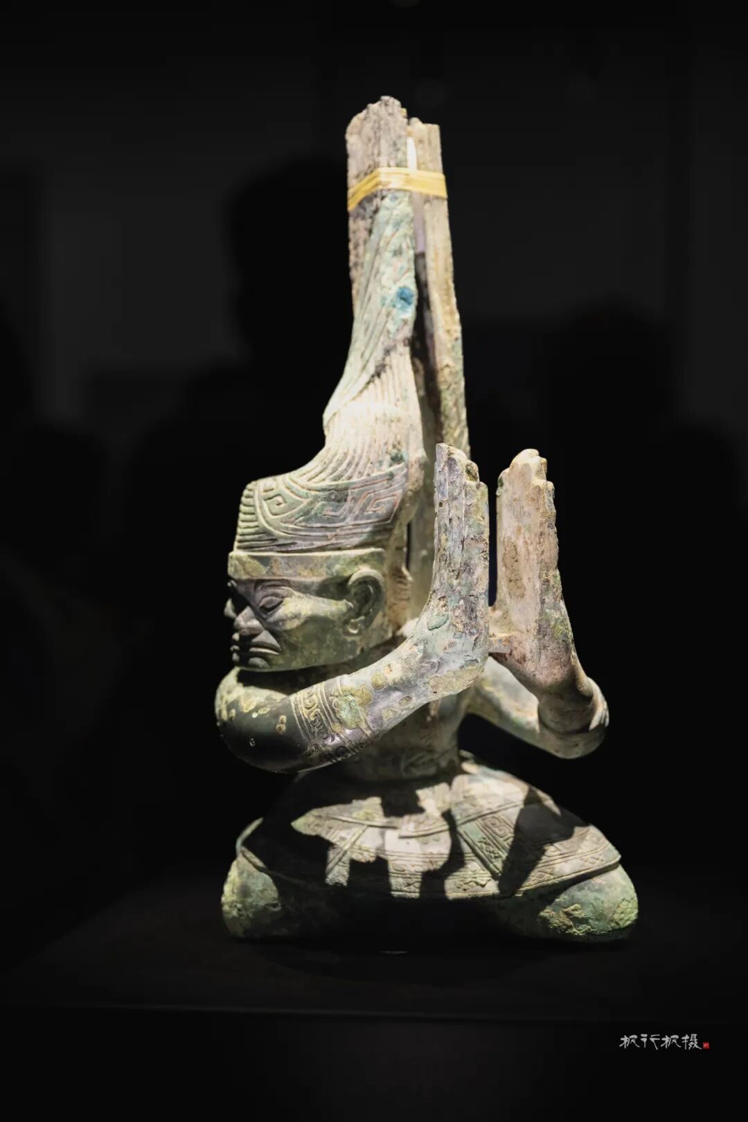 看这个扭头跪坐人像,他的手里又握着什么呢?