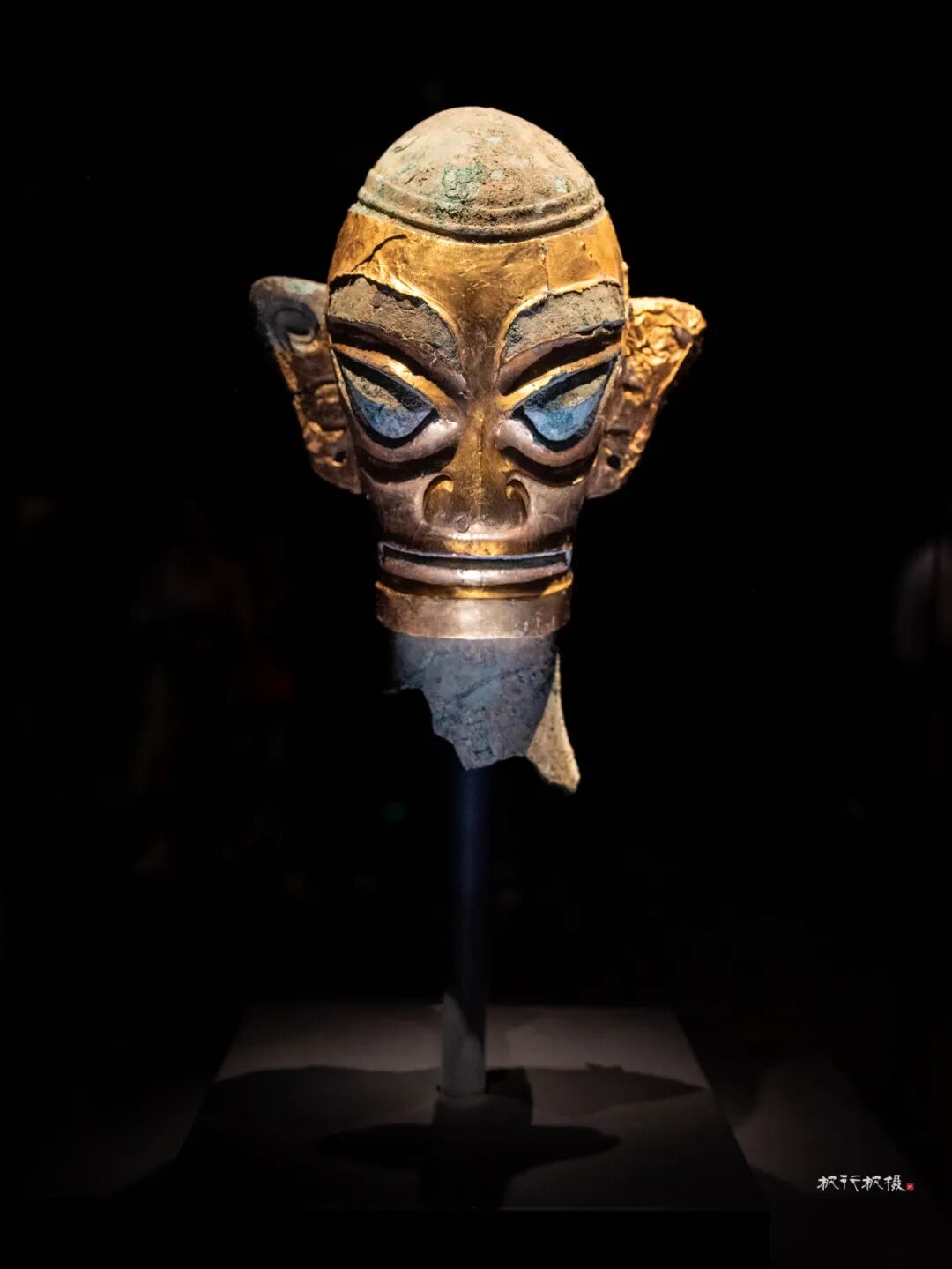 戴金面罩的铜人头像