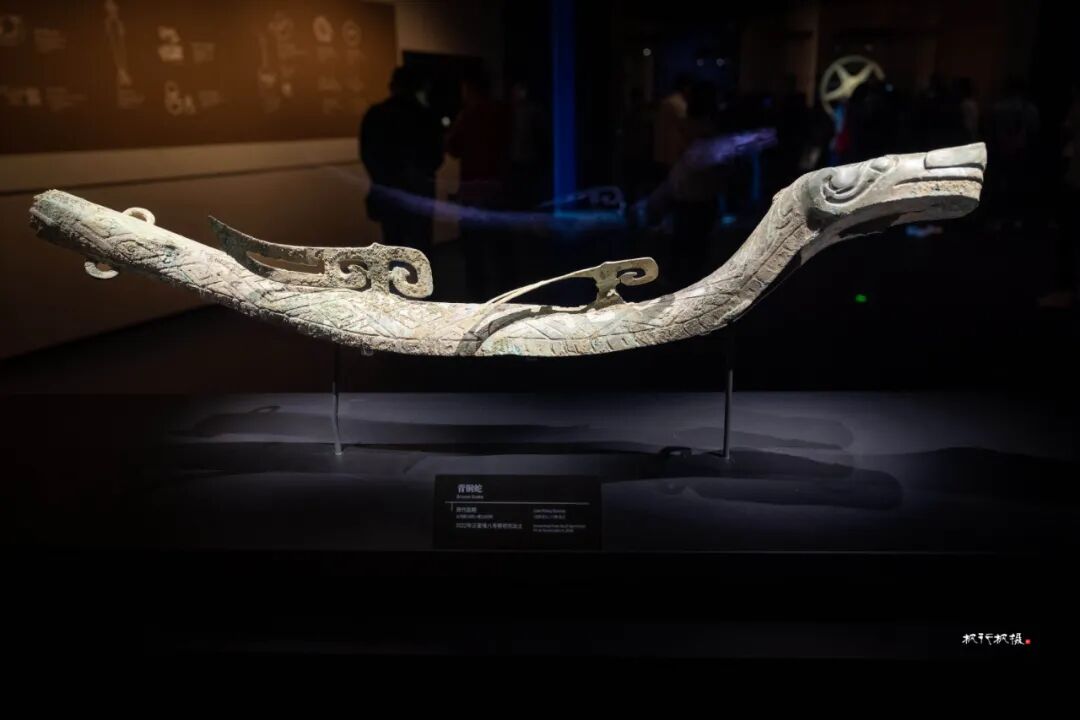 青铜蛇、青铜鸡(凤鸟)、青铜鸟头,动物造型生动,线条刚中有柔,细节处的纹饰不得不连连赞叹!