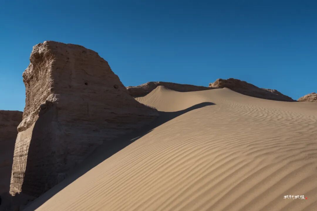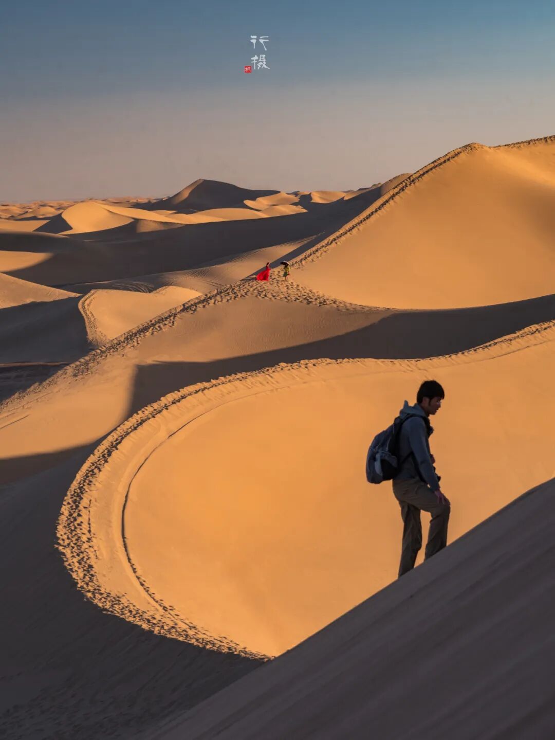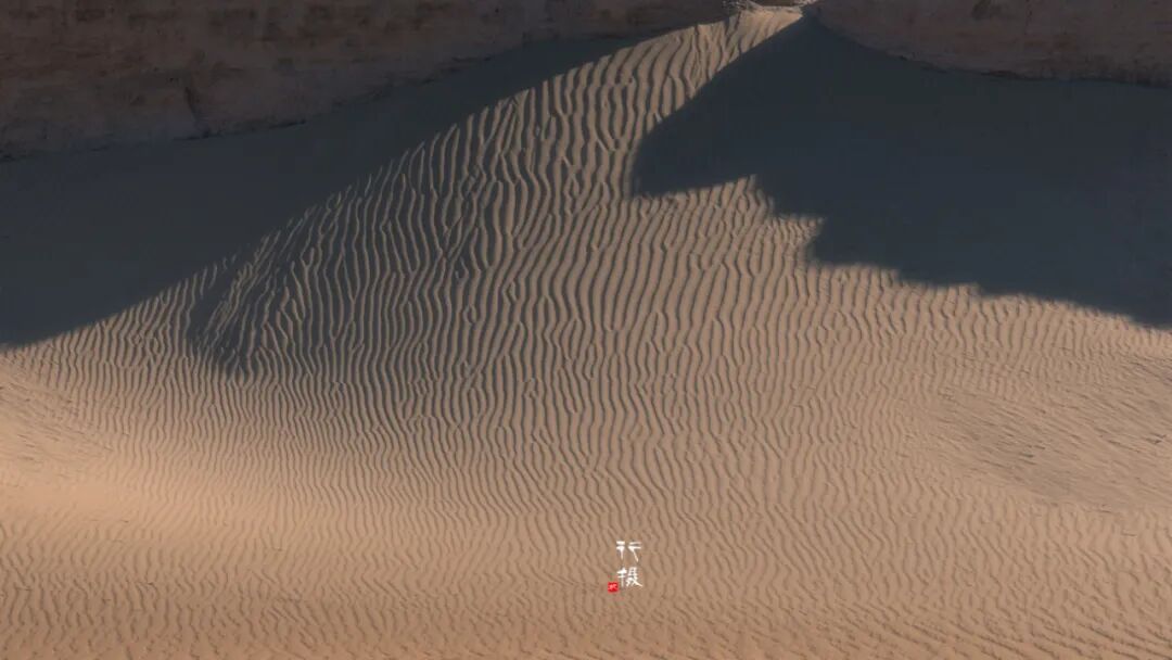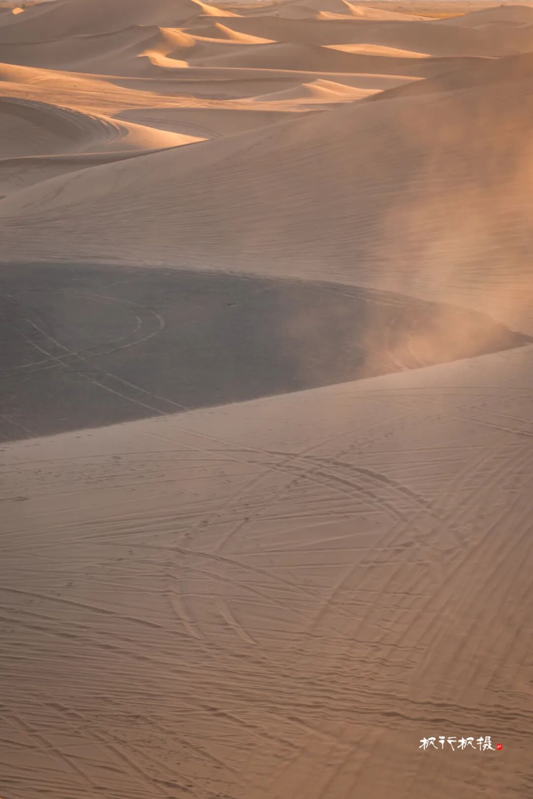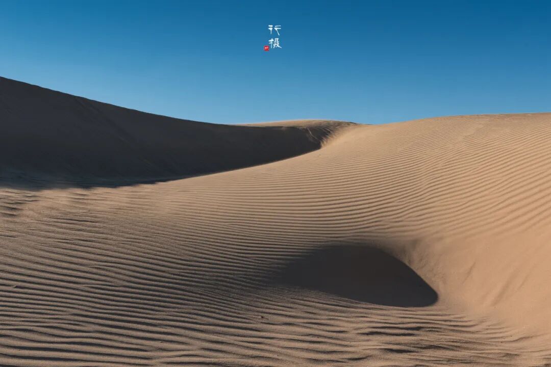 虽然不是第一次与沙漠亲密接触,但望着这片见不到任何生命迹象的蛮荒无垠的沙漠,仍会喜欢它细腻温柔的肌理,蜿蜒优雅的沙脊,被风揉皱的沙线沙窝。沙的韵律,刚与柔的完美结合,仿佛飘荡的五线谱,至到夕阳的余辉散尽。