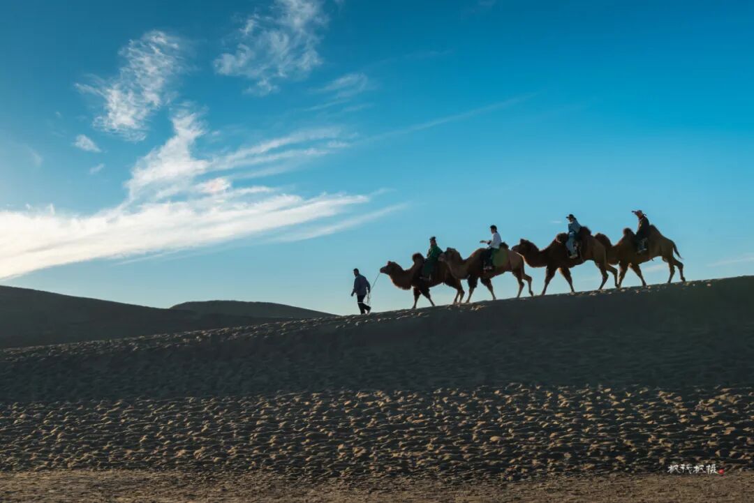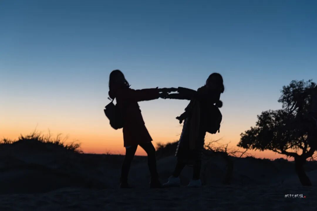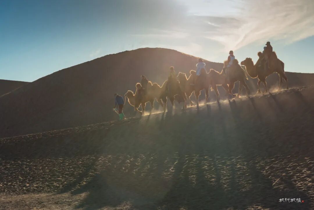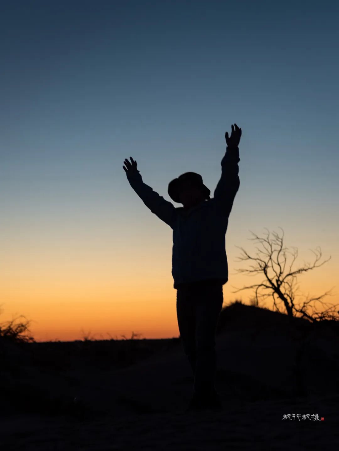 临近黄昏来到八道桥,这里是胡杨林与沙漠的交界,属于世界第三大沙漠——阿拉善盟巴丹吉林沙漠的边缘。黄昏的八道桥,驼队在沙山漫步,沙丘起伏跌宕,绵延如波浪,一眼望不到边。艰难爬上沙山顶,静静的坐下,欣赏沙漠日落的雄浑壮美,零距离体验 “大漠孤烟直,长河落日圆”的绝妙意境。