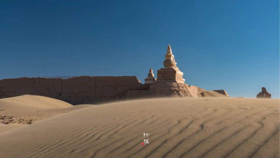 在距额济纳旗府达来呼布镇35公里的戈壁荒漠上,有一座西夏古城的遗址--黑城遗址。慕名来此游览人们,行至距古城10余里时就能望见高耸在古城西北角上的那座著名的白塔,在阵阵吹拂的沙尘中时隐时现,神秘莫测。