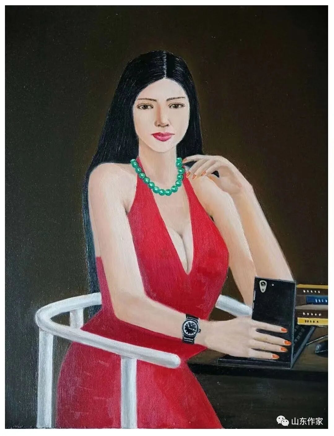 你那忧郁的眼睛深邃的眼睛你是天穹上的一颗星让我惊醒点燃一支烟我知道这是不良嗜好有可能伴我到老灵动•灵感•灵魂驱使我迅速抓住这惊梦瞬间怕你回头的摆手怕你再也不回首还好啊你永住在这画布上留住了你的忧郁的倩影留住了你的键盘•手机留住了你让我惊梦的瞬间你是一颗忧郁的星你对着暗夜写出感动自己也感动他人的诗篇惊梦•女诗人还有你心脏颜色的红衣惊梦•惊梦!我庆幸留住了你我庆幸赋于了你的生命你有了灵魂你对人们说要超凡脱俗要用一个女人对诗的追求对诗的崇拜让灵魂燃烧吧让爱情,亲情,友情,化做人间永垂不朽的诗篇这是人间永恒的诗篇……我追求浪漫我追求真实我追求永不变色的善良我走下了画板我在你们中间画家赋予了我的生命我不是仙我们常相见虽然我在墙上人们却把我围观还会浮想联翩我和你们一样也会有一个女人一个女诗人的想象空间我要回到墙上啦但愿人与人亲密无间远古在呼唤去寻找灵与肉的相爱相伴…