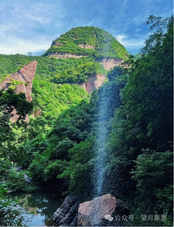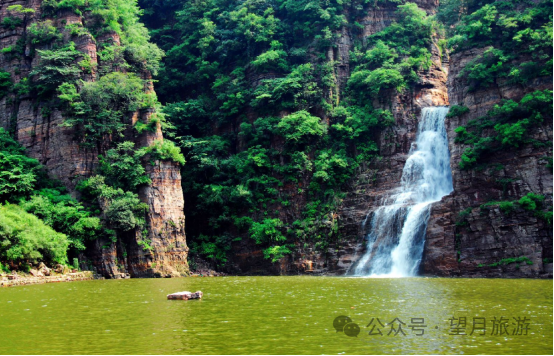碧潭翠瀑:绿意盎然的植被映衬下,一道翠绿的瀑布从高处跌落而下,宛如碧玉般晶莹剔透。这里是峡谷中清新宜人的一隅。