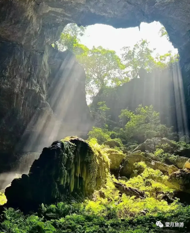 都安弄响天坑,天晴时可感受丁达尔之光,仿佛置身于神秘的光影之中。