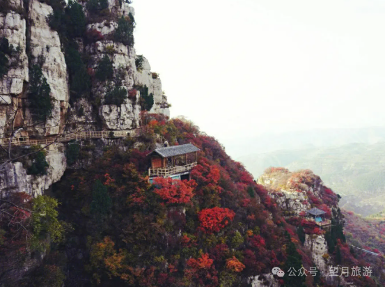 全长约700米的古栈道是山东省最长最险的天然栈道。秋季时,红叶满山,美不胜收。沿途的九峰抱谷让人仿佛置身仙境。