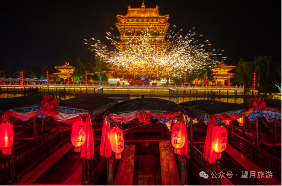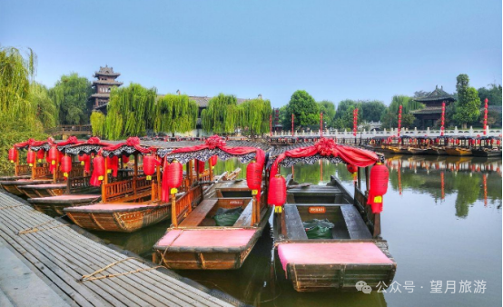 古城里有很多值得一游的打卡地。船形街就是其中之一。这座建筑像一艘扬帆起航的大船,四周环水,寓意着“大河行舟,一帆风顺”。正面直视大船,龙头喷水的景象十分壮观。这里目前是非物质文化遗产博览园,让游客在欣赏美景的同时,也能感受到传统文化的魅力。