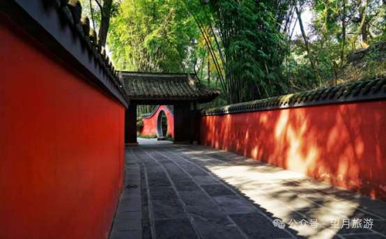 在杜甫草堂中,最让人惊喜的莫过于那处重建的茅屋了。它按照川西民居的特色精心打造而成,再现了诗人故居的田园风貌。茅屋的墙壁上爬满了青藤和绿叶,仿佛一幅幅生动的画卷;屋顶上覆盖着厚厚的茅草,给人一种古朴而自然的美感。而红墙夹道下、竹子掩映中的草堂影壁更是成为游客们争相拍照留念的热门网红打卡地。