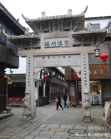 古镇中心的标志性建筑——钦奖武功坊,矗立在中市街与南市街的交汇处。这座建于明万历末年的牌坊,是为了纪念御倭有功的乔镗而建立的。虽然河道已填,石桥已拆,但牌坊上的“彪炳千秋”和“禦倭功赐”字样依然清晰可见,诉说着那段辉煌的历史。
