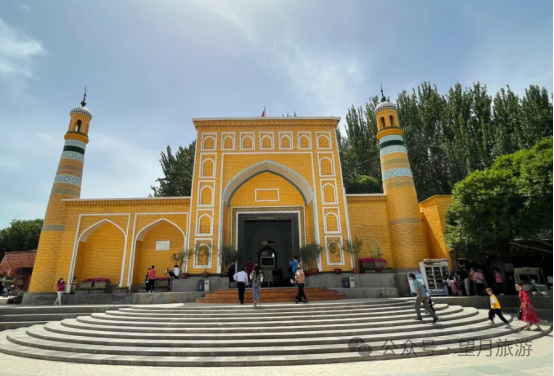 在这座城市里,有一片古老而宁静的地方,那就是著名的喀什古城。街巷狭窄,古朴的砖石墙和民居仿佛承载着丝绸之路上的繁华历史。其中,艾提尕尔清真寺则是一座壮丽的宗教建筑,它不仅是朝圣者的信仰中心,还在阳光下显得肃穆,宣礼塔直插云霄,吸引着信徒前来祈福。