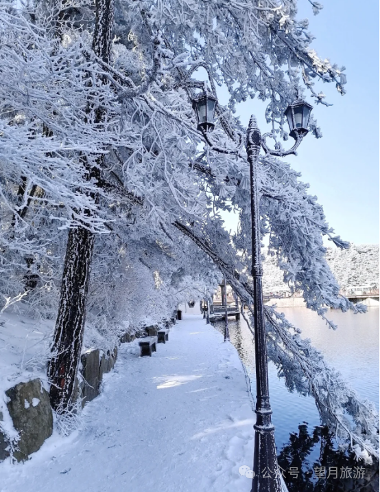 如琴湖是庐山上一个幽静的湖泊,湖水如一弯悠扬的琴弦,与周围的雪景相映成趣。在湖畔漫步,仿佛能听到雪花落在湖面上的轻柔声音,是一个极富诗意的景点。