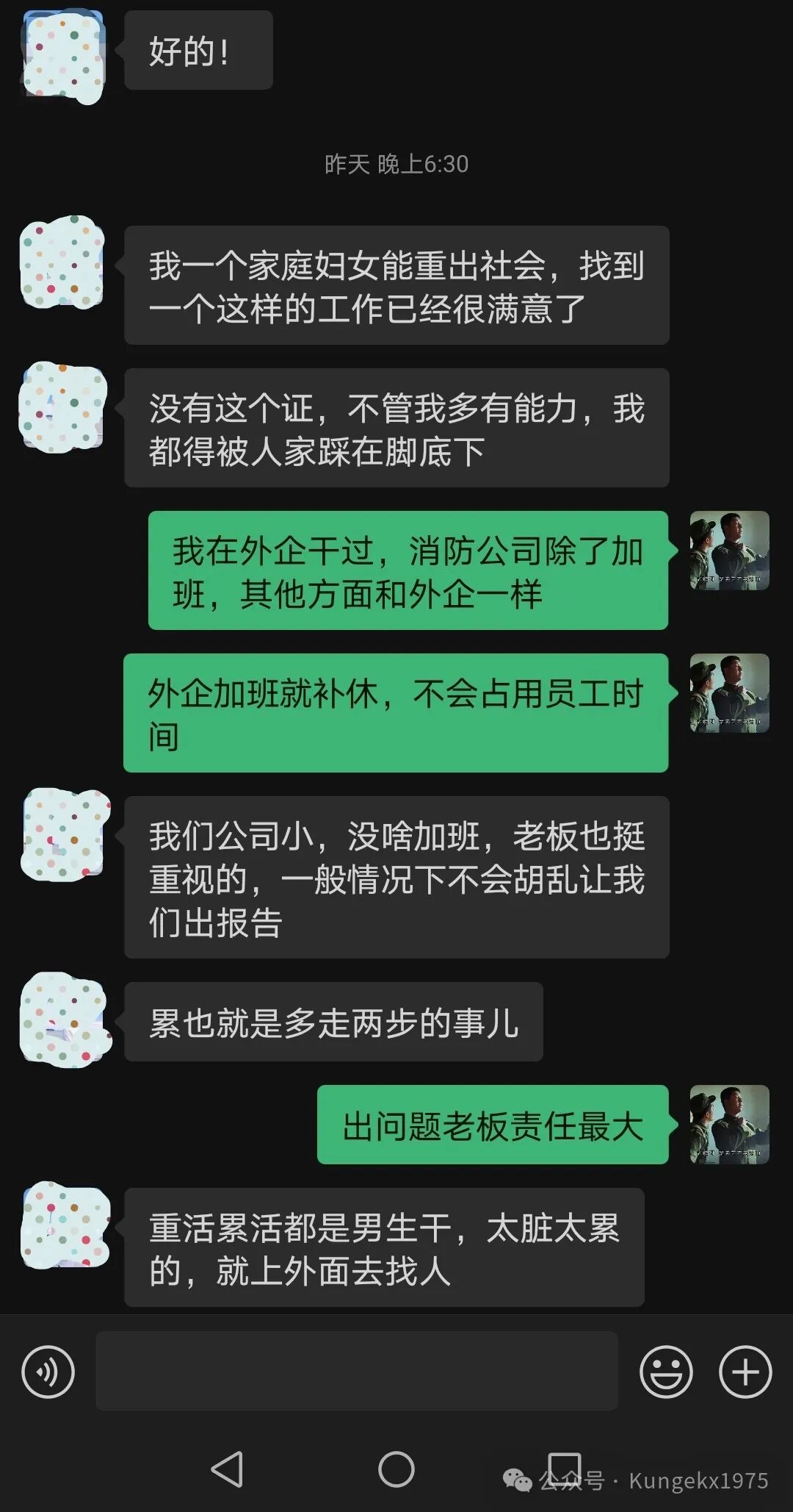2.人际关系简单,消防工程师工作的环境都是小公司,管理扁平,岗位和职位层级简单清晰,老板是一个层级,项目负责人和技术负责人一个层级,再下来就是维保检测人员。
