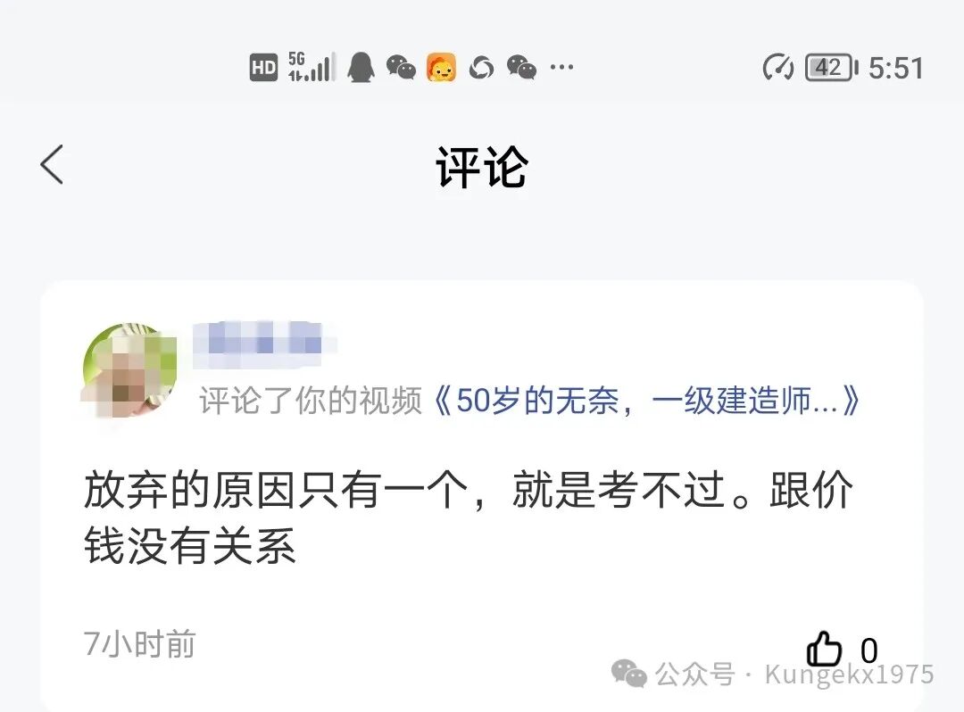 虽然我说我十几年没从事专业工作了,仍然有个考友回信告诉我他和我经历相同,专业干了几年,考编现在是个中学老师,依然把一级建造师过了。