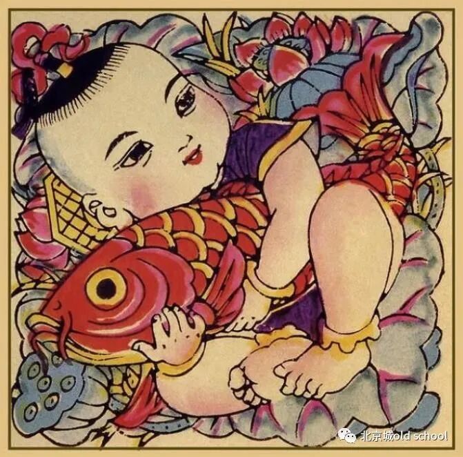 动物就更简单了,鱼最常见,因为它跟“余”是谐音,贴在院子里,寓意着年年有余,不是大胖娃娃抱锦鲤,就是鲫鱼跳龙门,回看曾经的这些吉祥图案,感觉特别有年代感