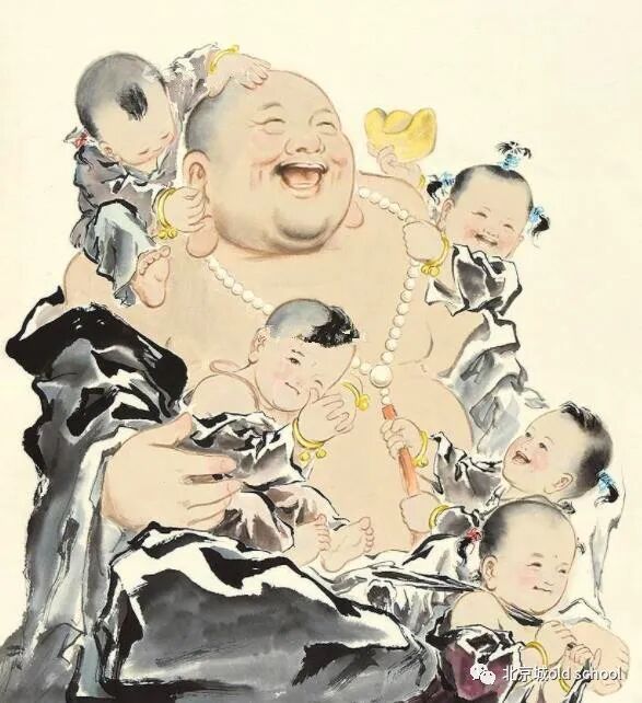 其他组合图案,比方说童子骑着大象,手里抱着“如意”这是吉祥如意,大象背上驮着一瓶子,意思是太平有象,五个童子围坐在弥勒佛身边儿,意思是五子闹弥勒,寓意阖家欢喜