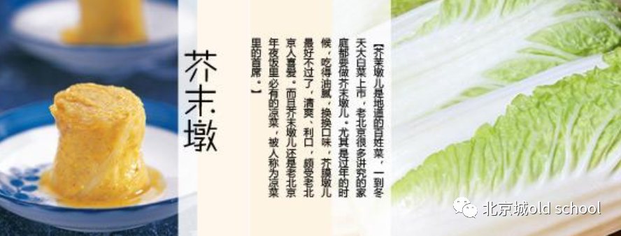 甭管是大饭庄还是小饭馆,都会准备这道吃食,最典型的老字号砂锅居,凭借着白菜和芥末的固定搭配,一直延续到了今天,口碑从来都没倒过,真正地道的老北京芥末墩儿,有提神醒脑的功效,而且芥末都是精挑细选出来的
