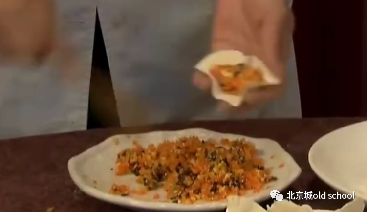 特别适合家里人多的时候用,一人擀皮 ,一人包,一个春节肥甘厚味儿吃多了,老北京人还会一种既漂亮又营养的饺子馅儿,眼前这馅儿,咱们隐约能看出来,馅儿的颜色好像格外艳丽,这正是以胡萝卜为主调的馅儿