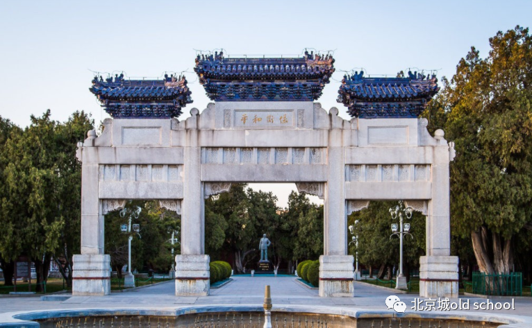 赶上‘抗美援朝’后,郭沫若把它改成了咱们现在看到的‘保卫和平’不过跟老照片相比,这座‘保卫和平’坊缩小了不少,原来比原牌楼少了四个‘楼’